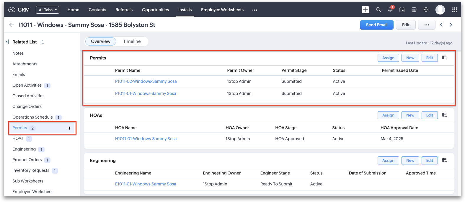 If you click on any item in the Related List, Permits for example, the system will navigate you to that section of the Record, where you can view the items associated with it, or click the record name to access that related record.