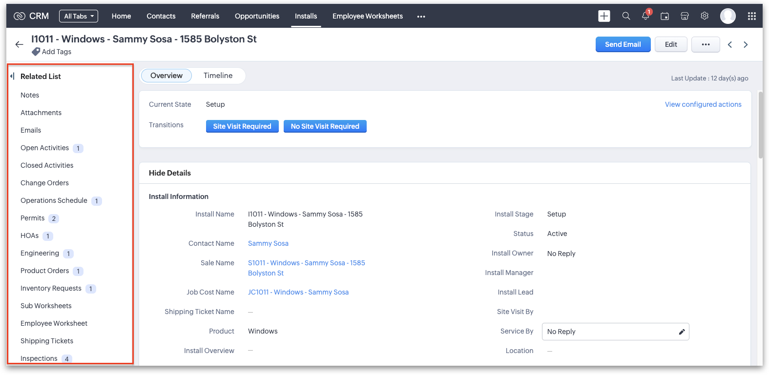 Related Lists are available on every Record to provide you with streamlined access to important information about all the related records, all in one easy to navigate section.