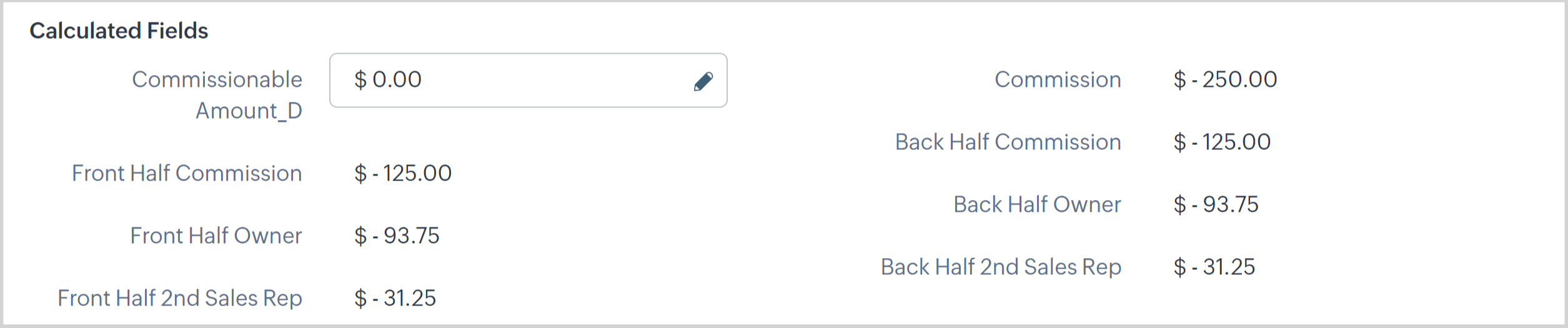 Front Half % Due - This is the % of the commission due as a front half commission and the difference will be due as back half commission. For example, if 25% is due as front half commission enter 25 in this field. The back Half will automatically be updated to 75