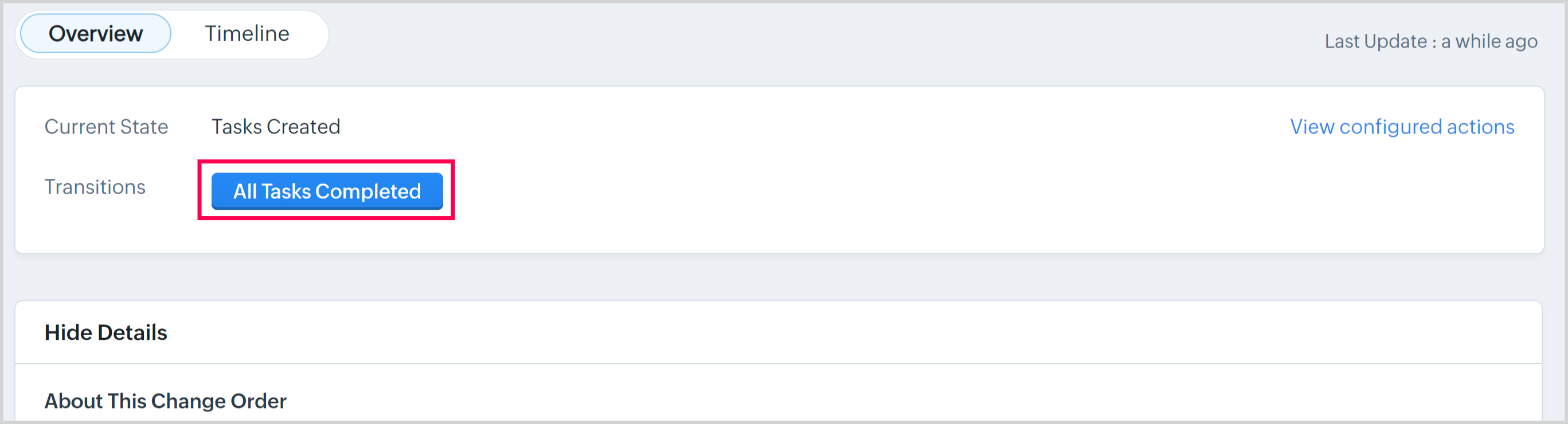1. If no tasks are required after approving a Change Order, click the No Tasks Required Transition.
