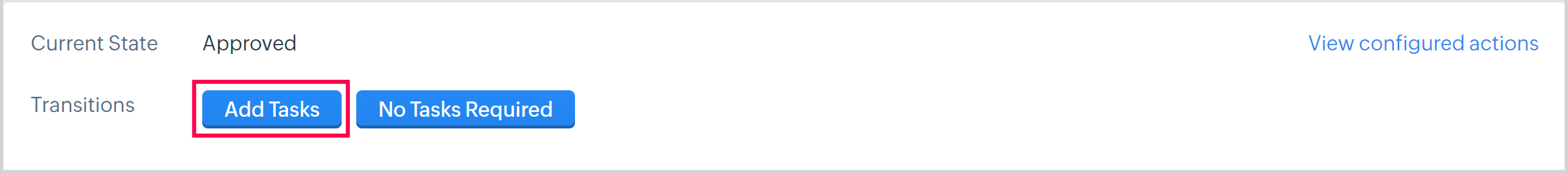 1. To add tasks to an approved Change Order, click the Add Tasks Transition on the Change Order Record.