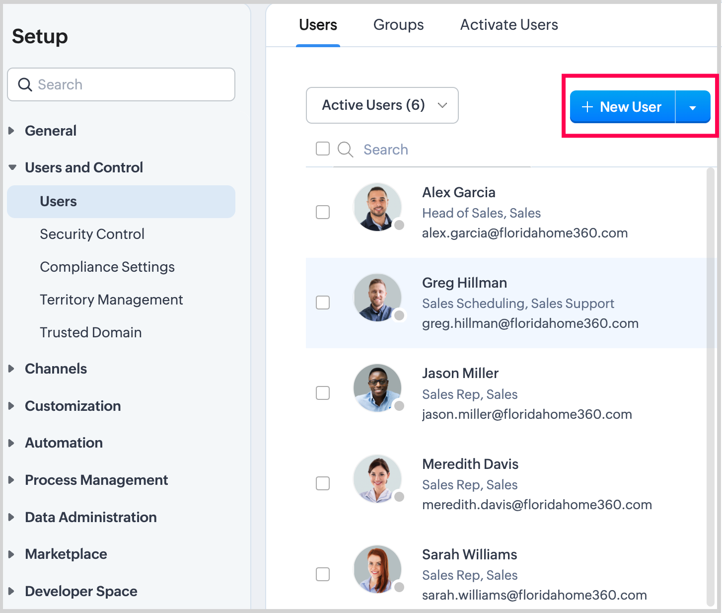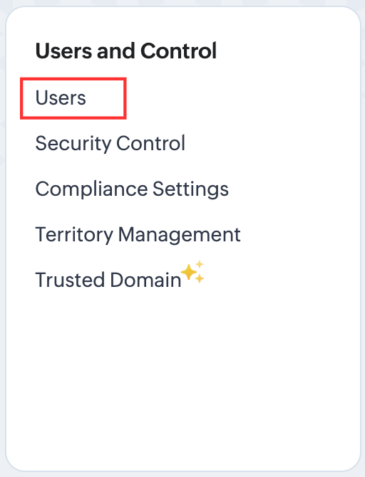 1. Go to Setup (gear icon) > Users & Control > Users.