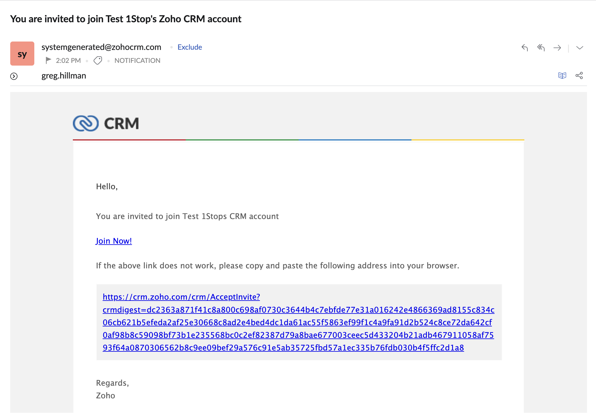 2. After Saving, an email invitation will be sent to the New User inviting them to Join Now. Please instruct them to click the Join Now link in the email.