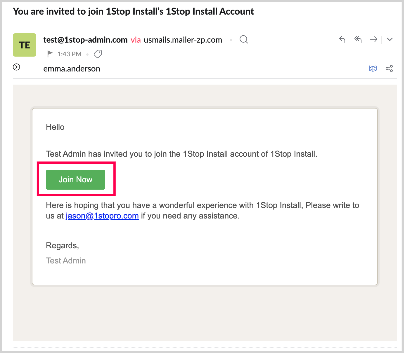 If a user has not received your invitation, first ask them to check their spam folder or search for subject line: "You are invited to join 1Stop Install's 1Stop Install account." If they still can't find it, you can resend the invitation per the instructions below.
