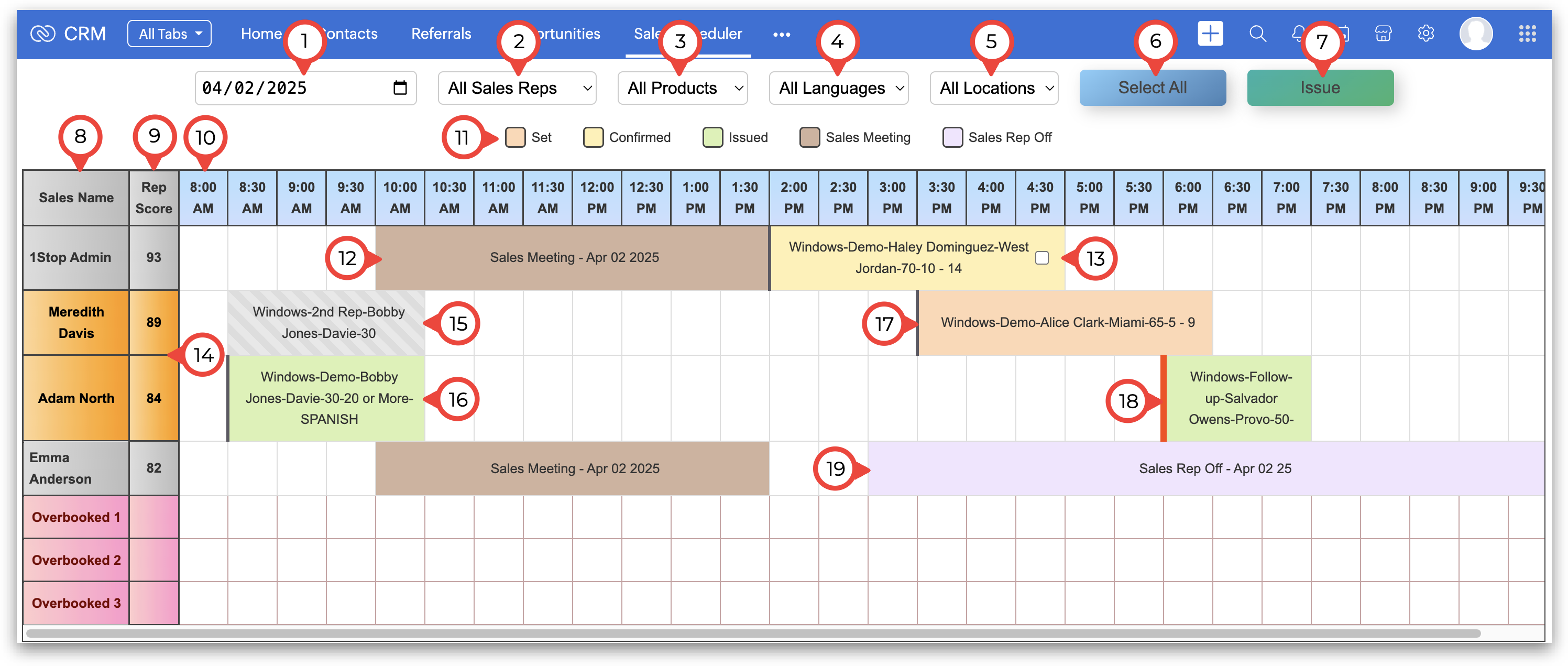 1Stop's unique Sales Scheduler allows all Demos, Follow-Ups, Sales Meetings and Sales Rep Off events to be created, edited and deleted all in one place. This ensures your Sales Team's calendar is always up-to-date, giving your appointment setters the ...
