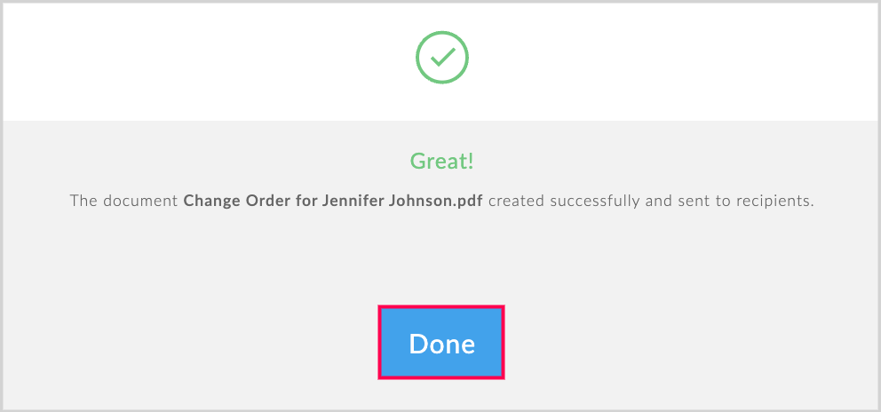 10. Once the document is sent, you’ll receive a confirmation. Click Done to finish.