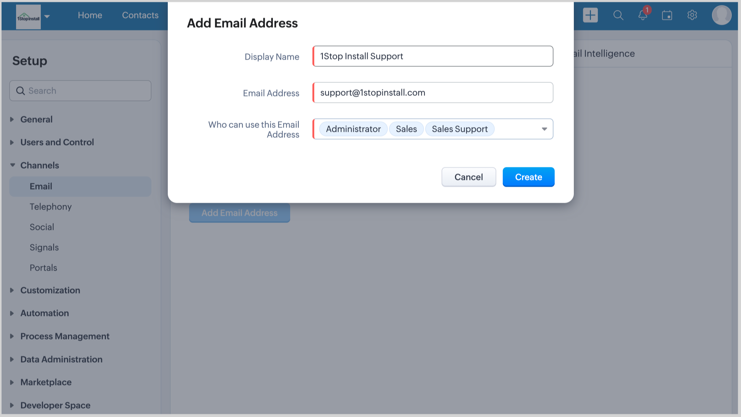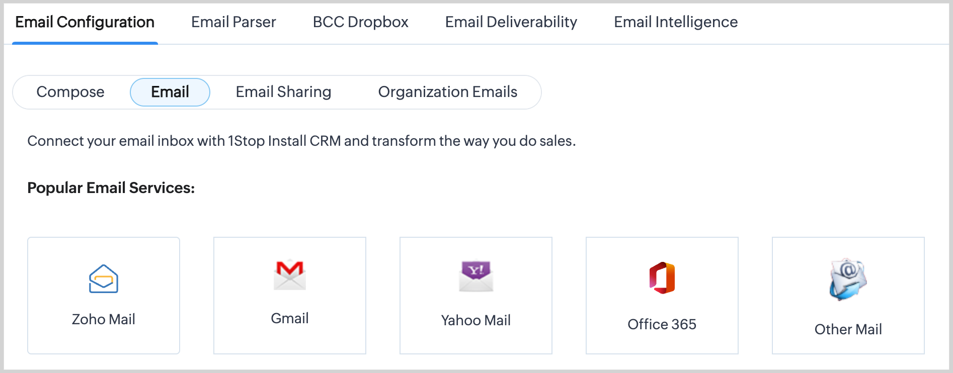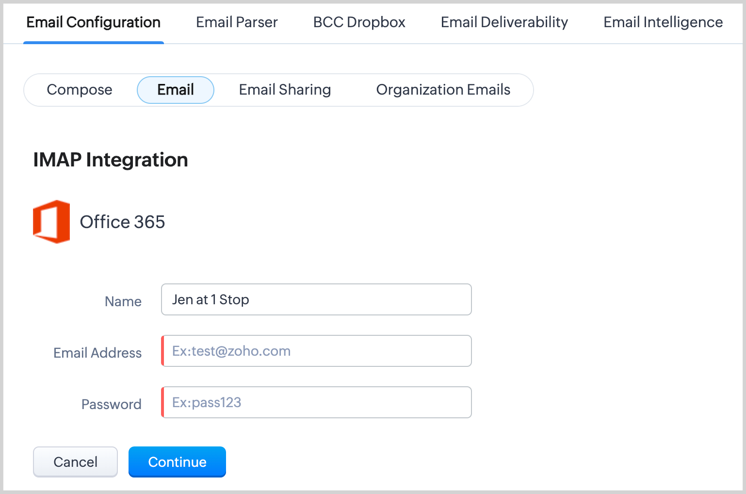 - Configuring your email only shows email communication between you and the Contact's email address inside 1Stop. No other email communication is captured inside 1Stop.