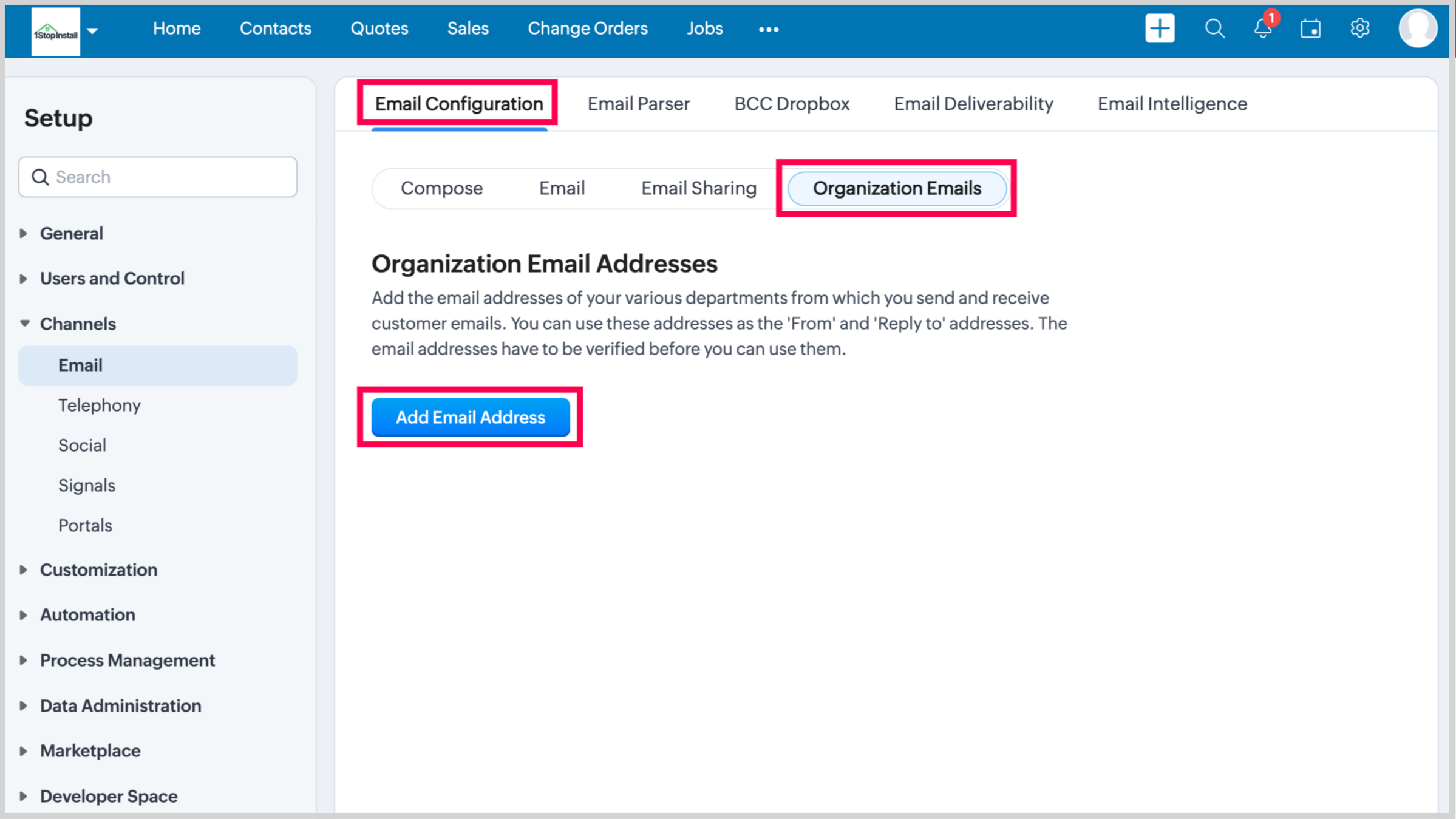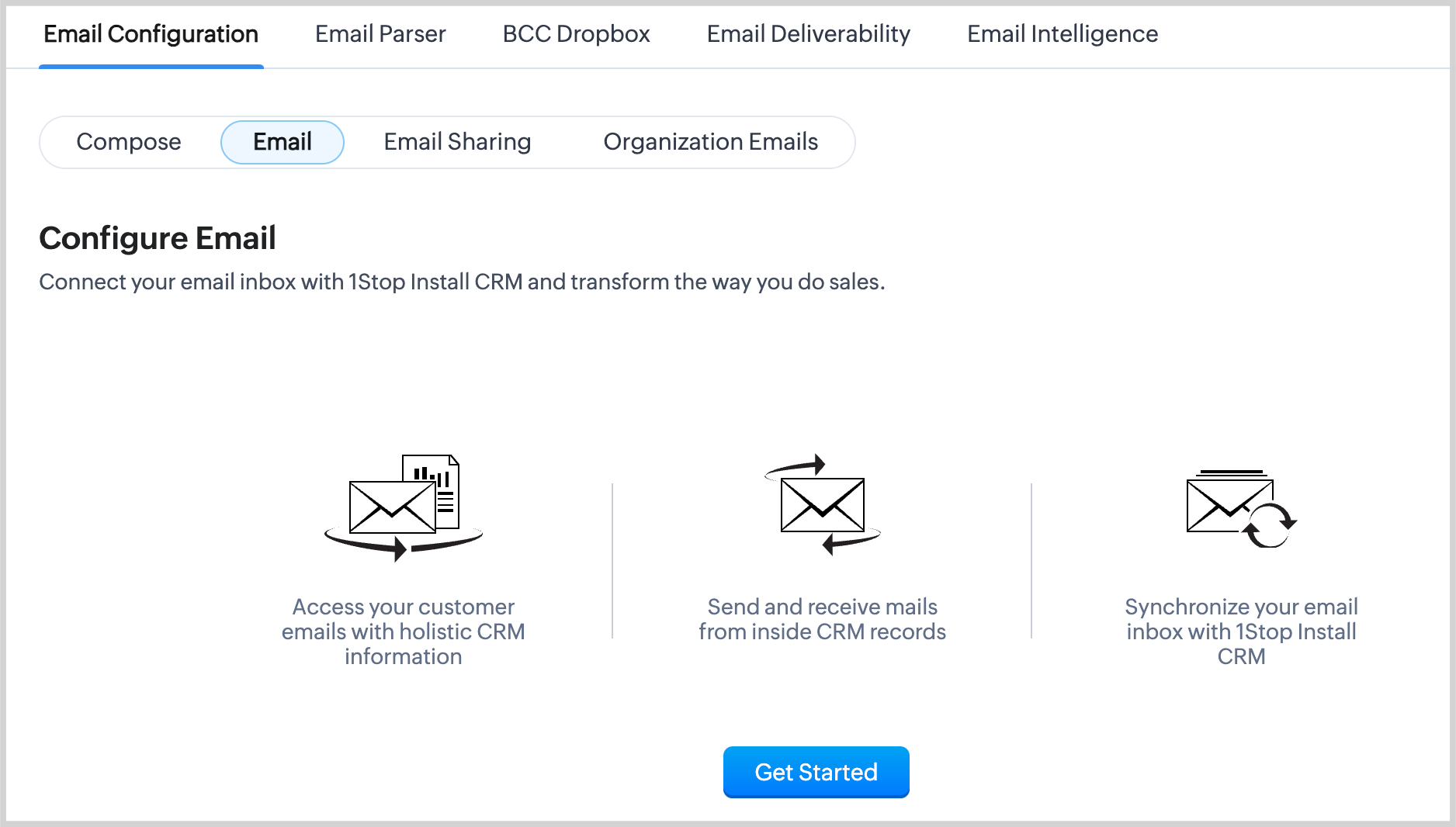 3. Click the Email Configuration Tab, the Email Tab and then the Get Started Button.