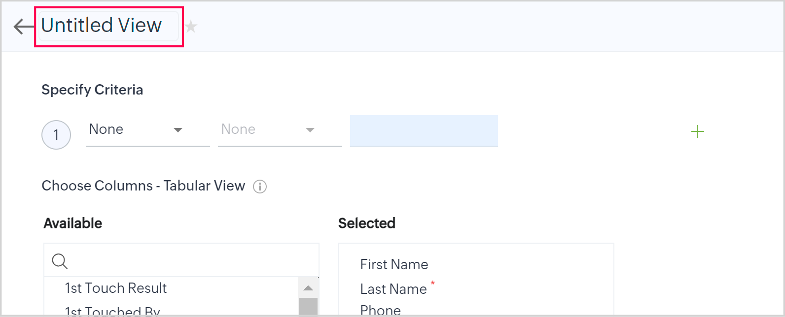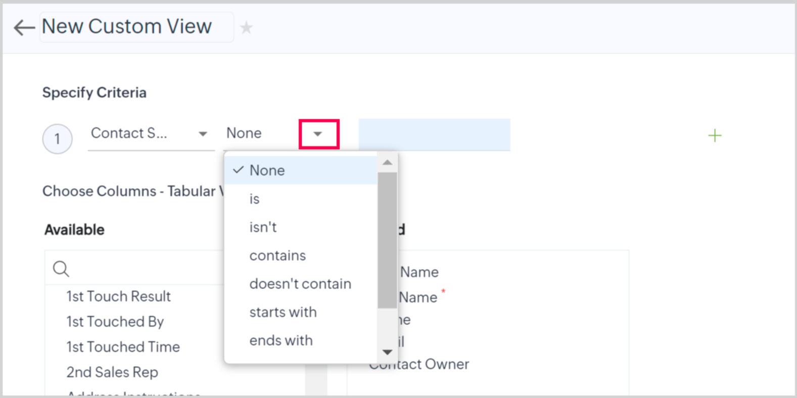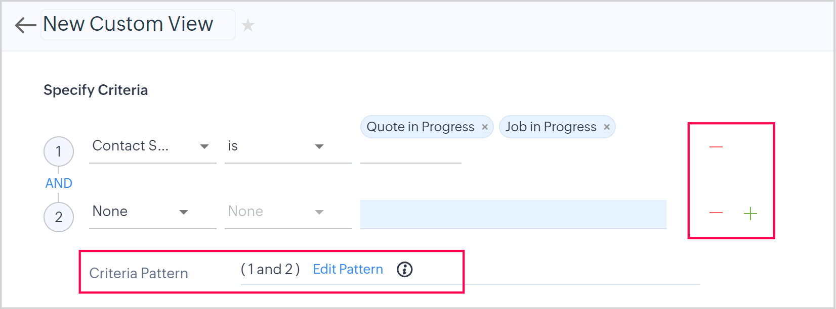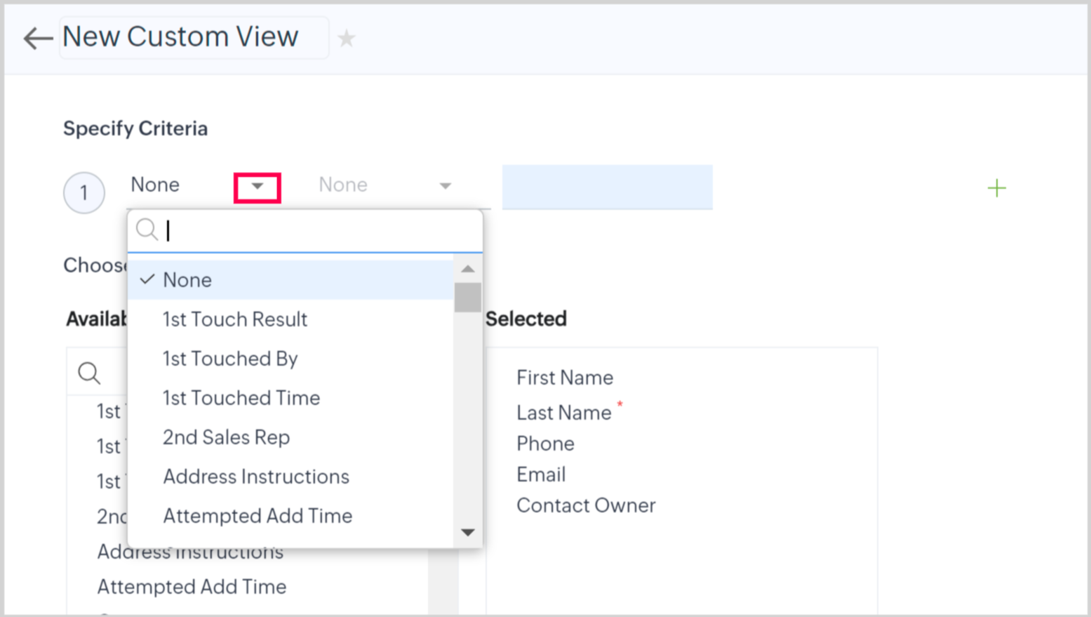 1. Specify Criteria - Add specific criteria for filtering the Custom View.