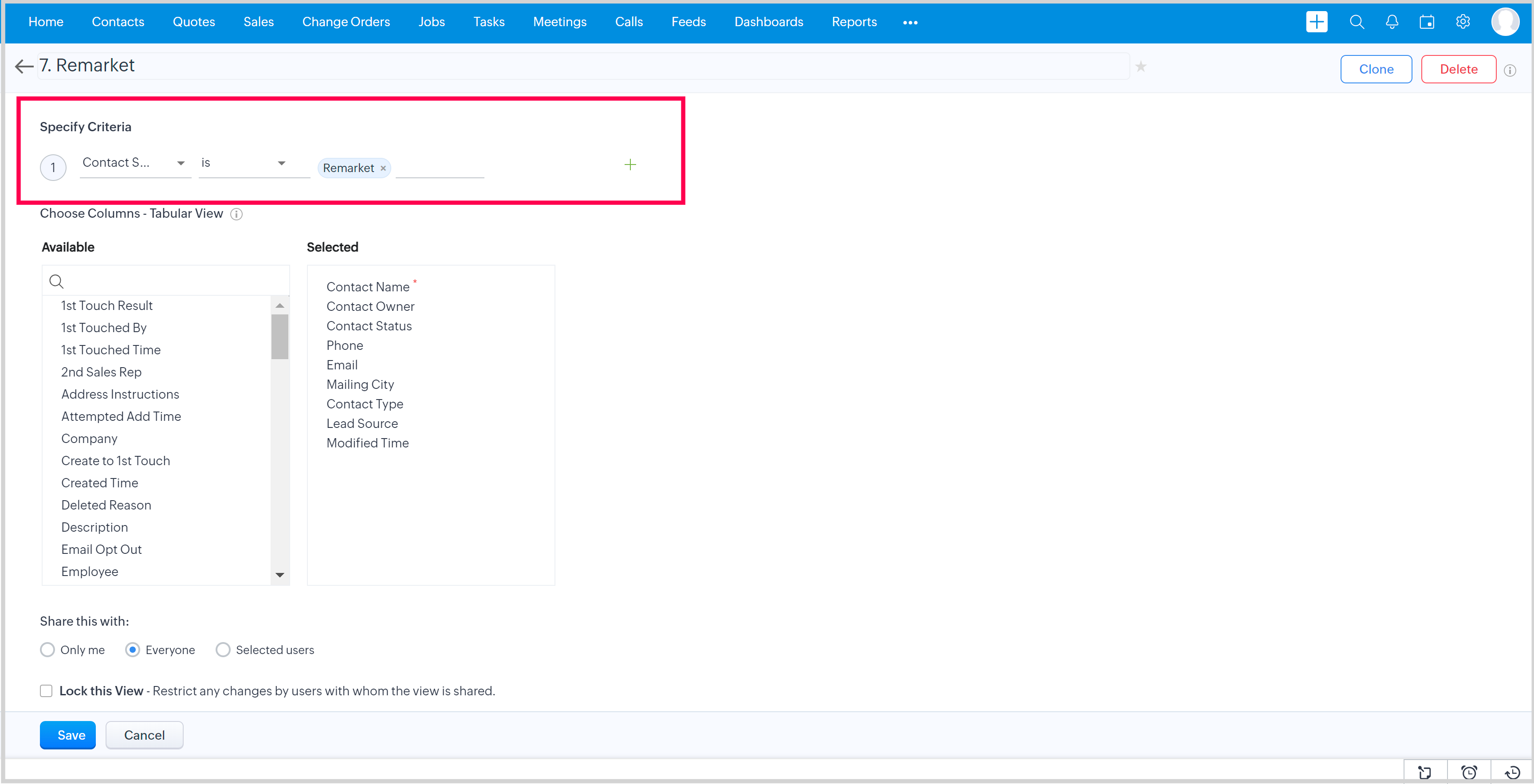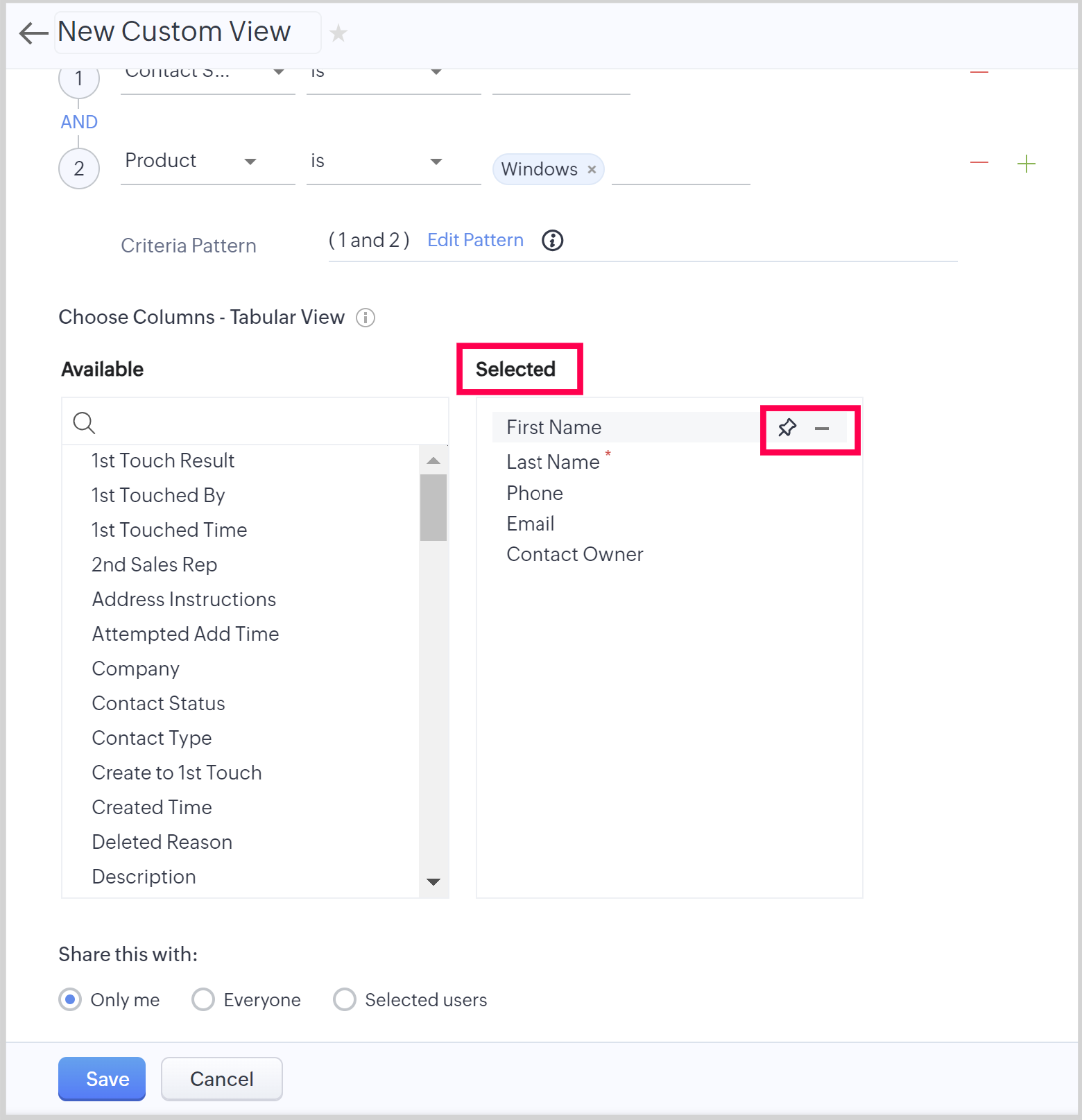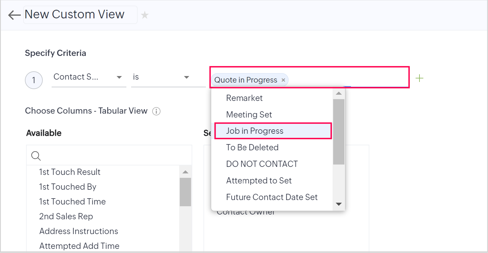 1. Specify Criteria - Add specific criteria for filtering the Custom View.