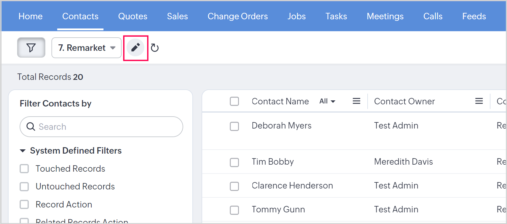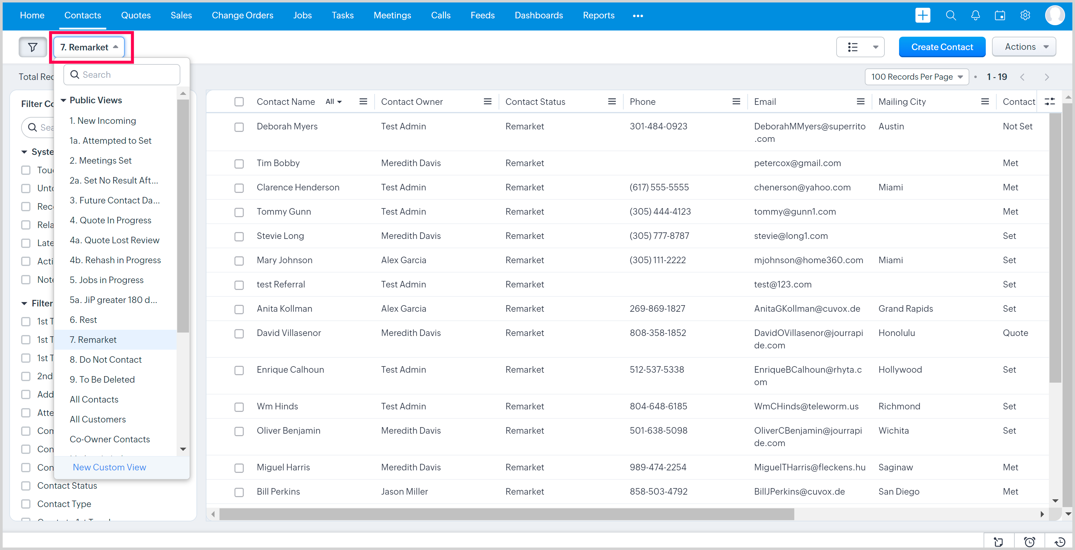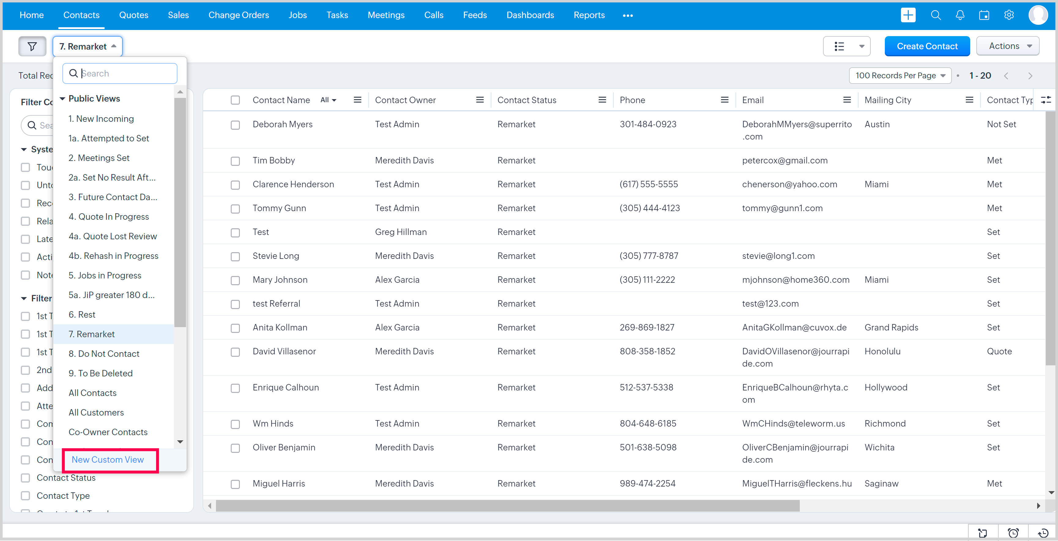 Each module contains pre-built Custom Views that were specifically created for it. To access the Custom Views for each module, simply click on the drop-down list located in the top left of the page.