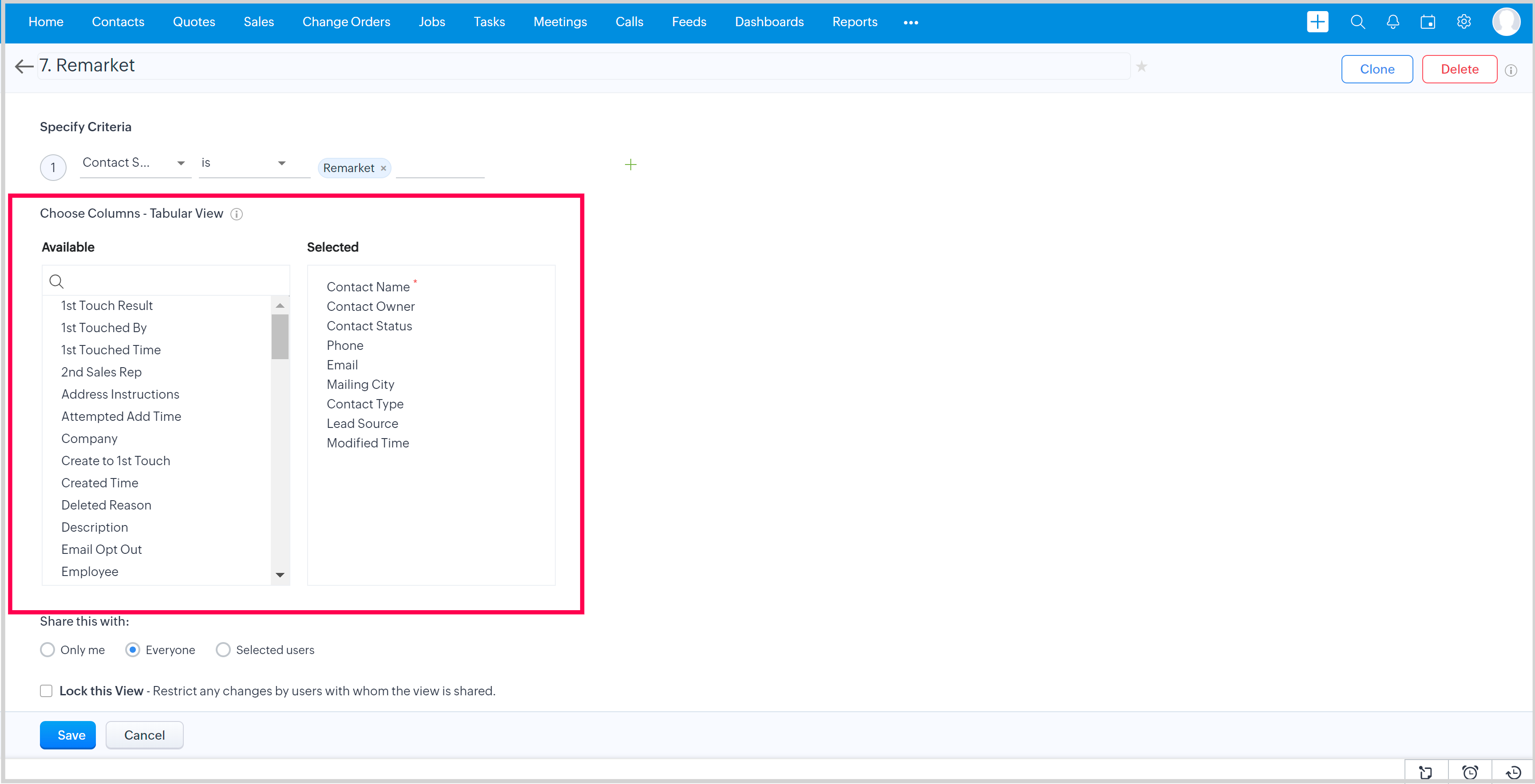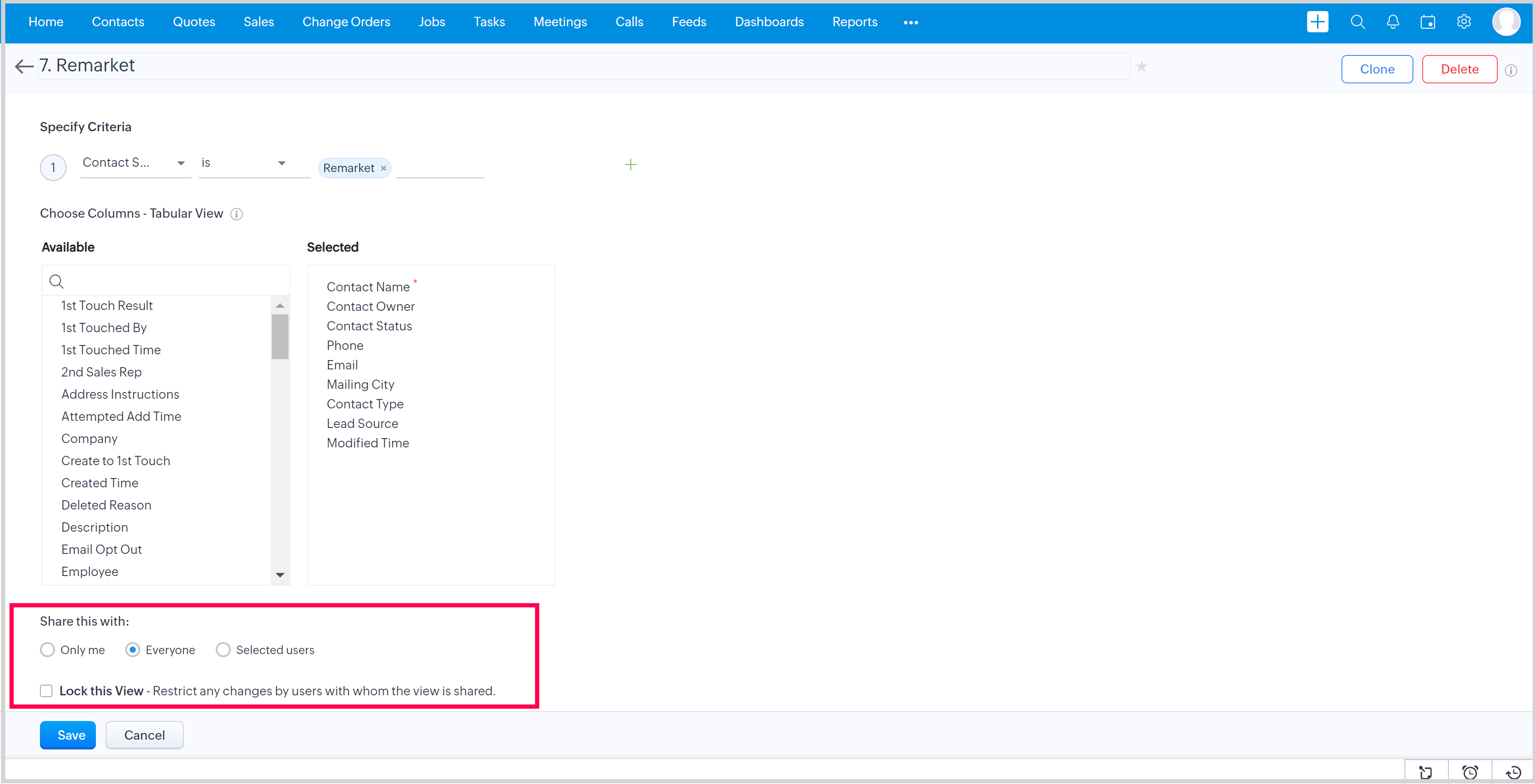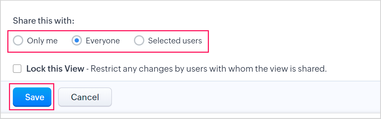 8. The last step is to Identify who the Custom View is shared with. From here, you can also lock the Custom View to prevent anyone from making changes to it.