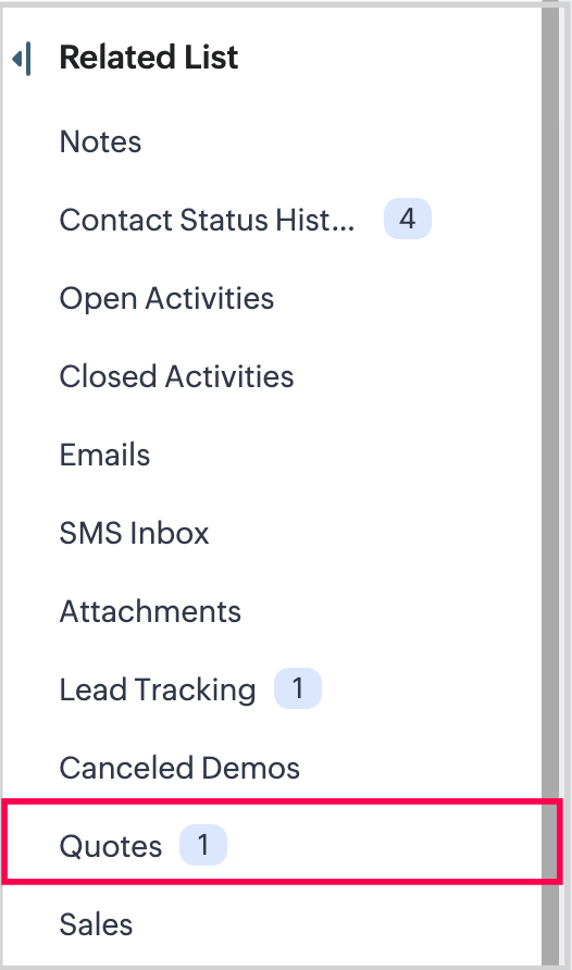 2. To view the Quote, go to the Related List on the Contact Record and click Quotes (it will auto-scroll you to the Quote section of the Contact Record).