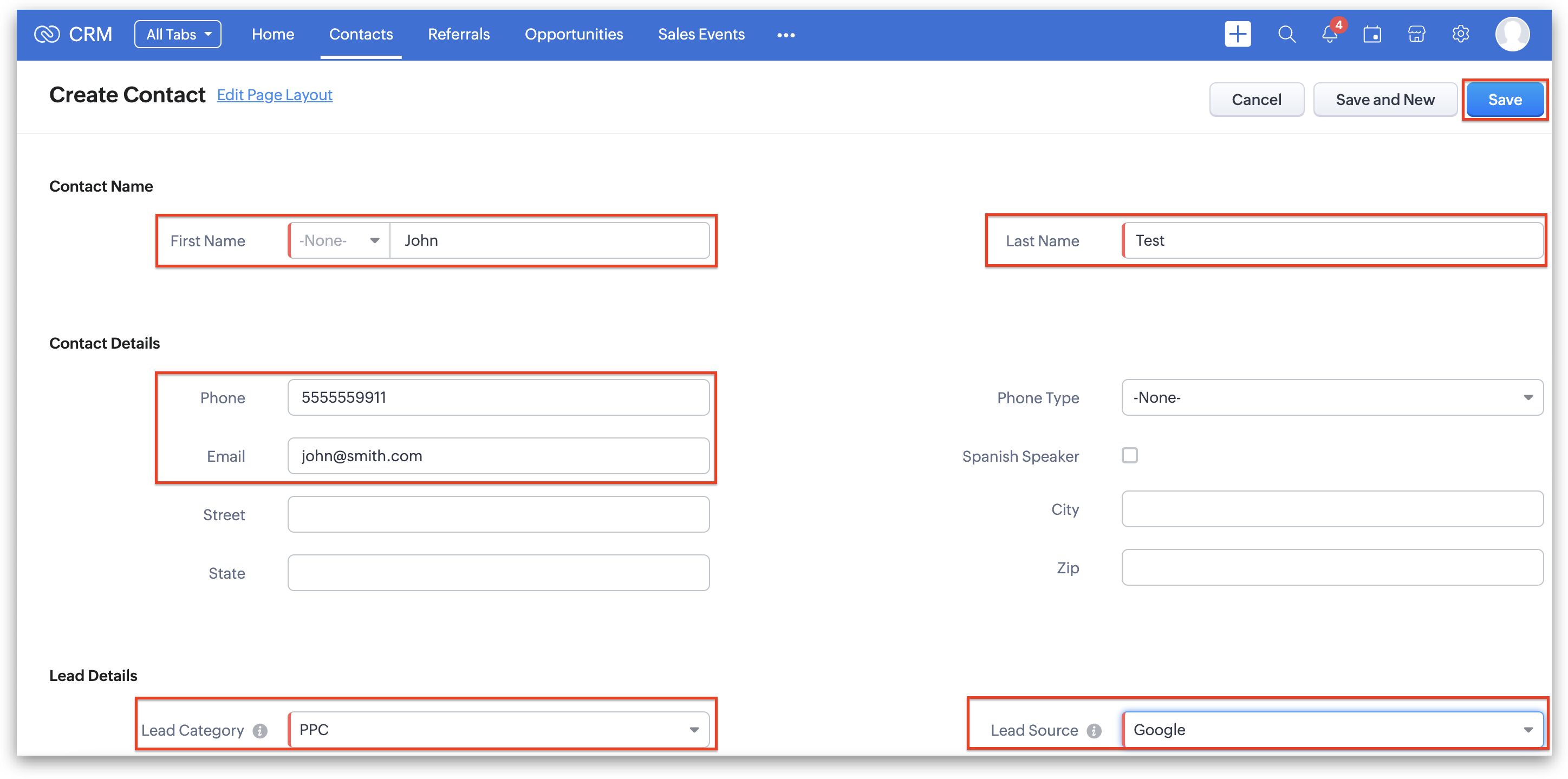 2. Any information that was already present in the Contact record will automatically appear. Click "Save".