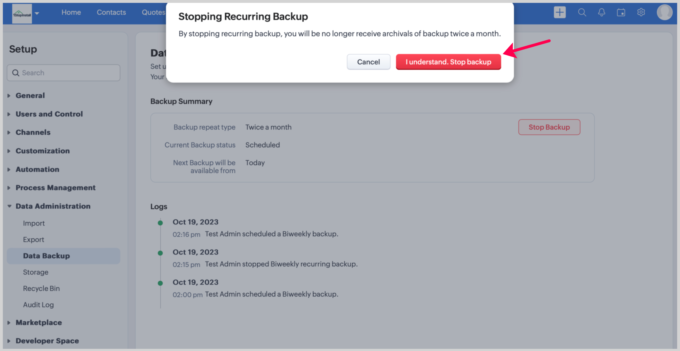 If you have a scheduled data backup, you can opt to cancel it whenever necessary.