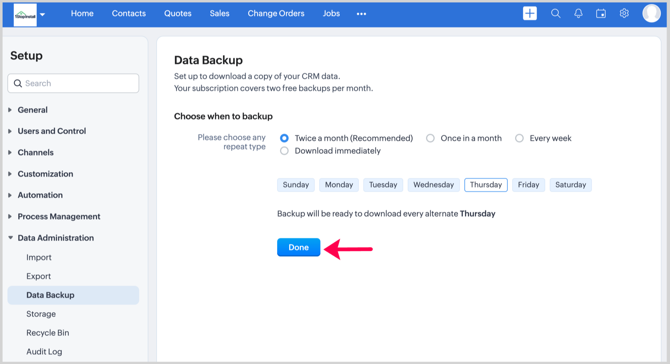 2. Upon clicking "Done," your selected backup preference, status, and availability will be displayed.