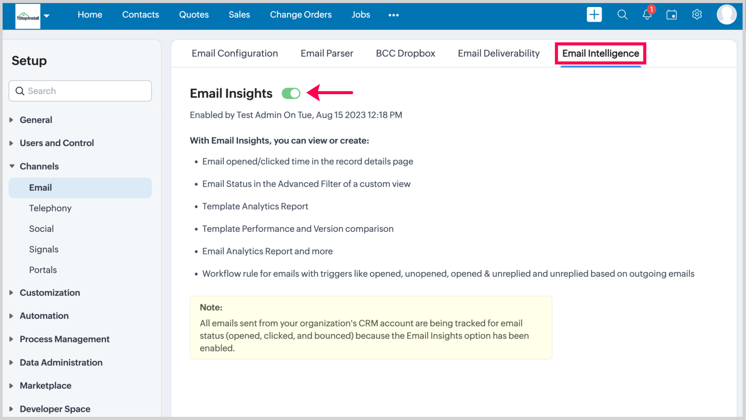 - Email Insights are enabled by default.