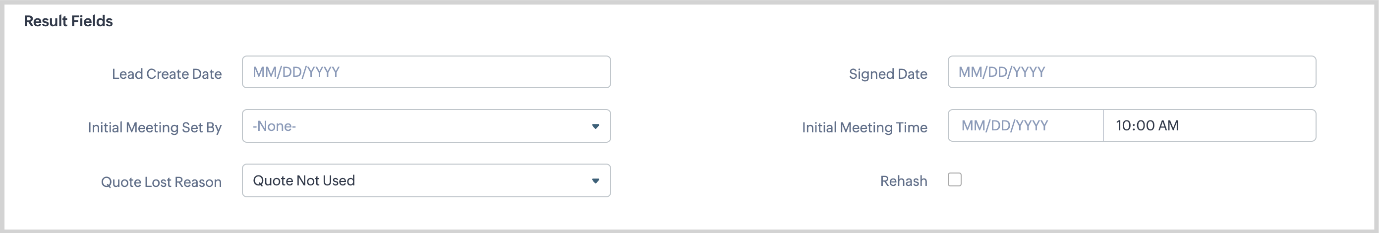 Result Fields Section