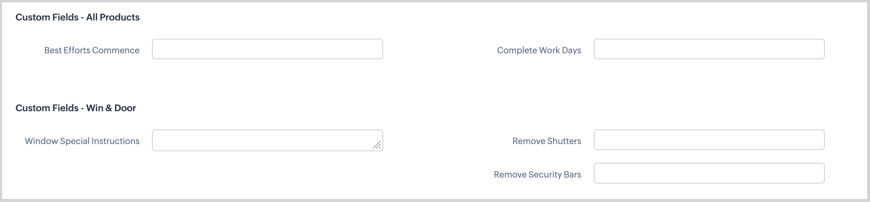 - Your company may have custom fields that need to be completed such as specific fields related to Product. Below are examples of custom fields.