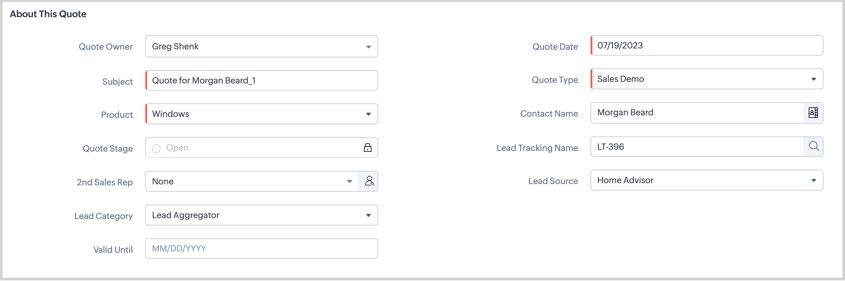 - If your company has a policy for Quote expirations, complete the Valid Until field.