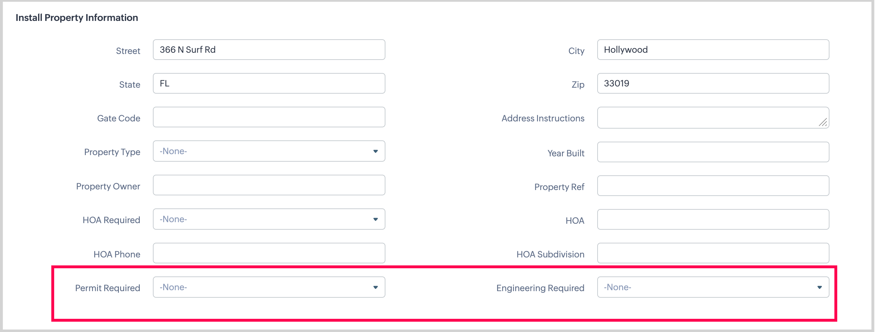 - If a Permit or Engineering is required, you must manually complete these fields.