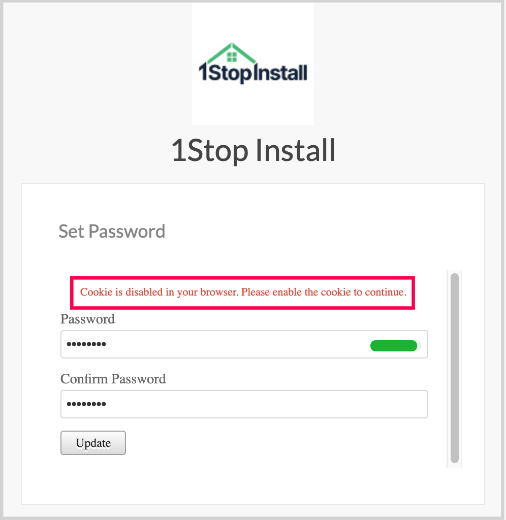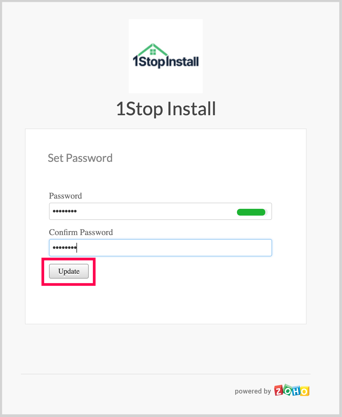 2. A new web tab will open in your browser. Please enter and confirm your password, then click the Update button.