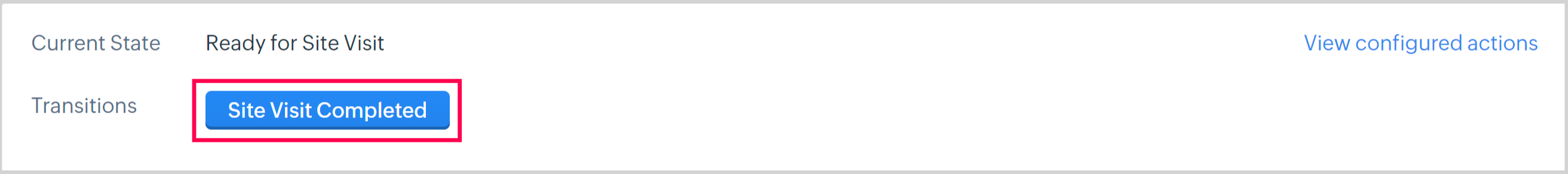 3. Once the site visit has been completed, click Site Visit Completed Transition