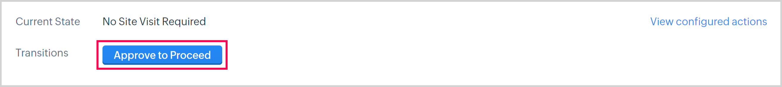 5. When the site visit results have been reviewed and you are ready to approve this Job to proceed, click Approve to Proceed Transition.