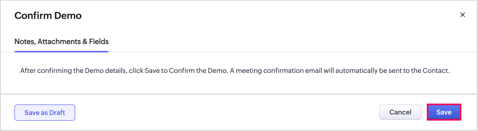 - Cancel - Close Opportunity: Cancel the Demo and close the Opportunity.