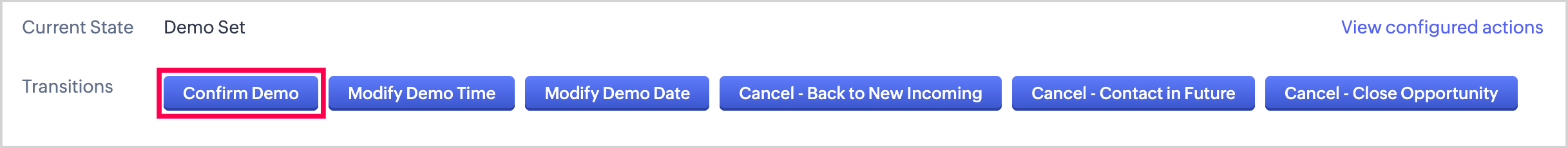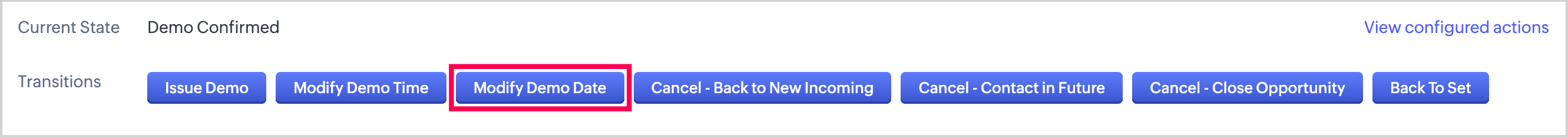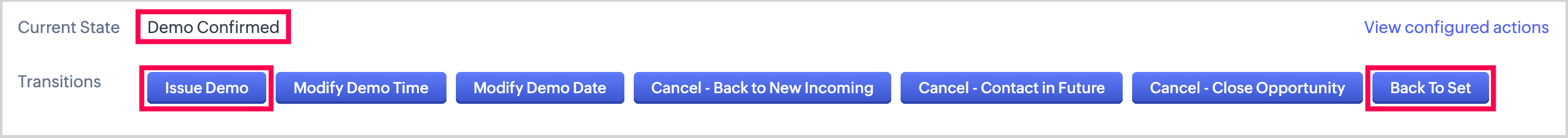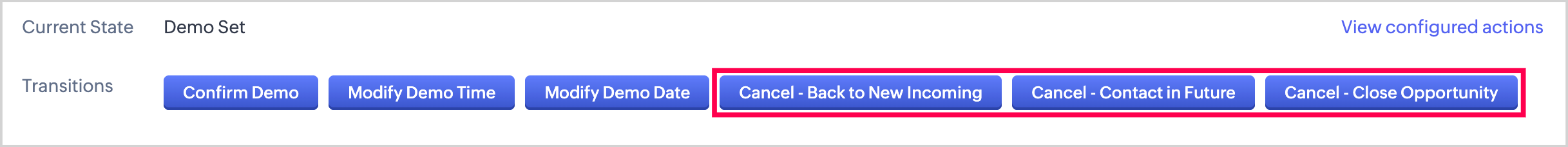 - Cancel - Back to New Incoming: Cancel the Demo and move the Opportunity back to New Incoming.