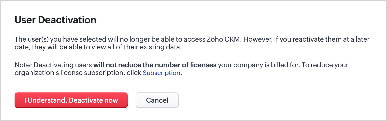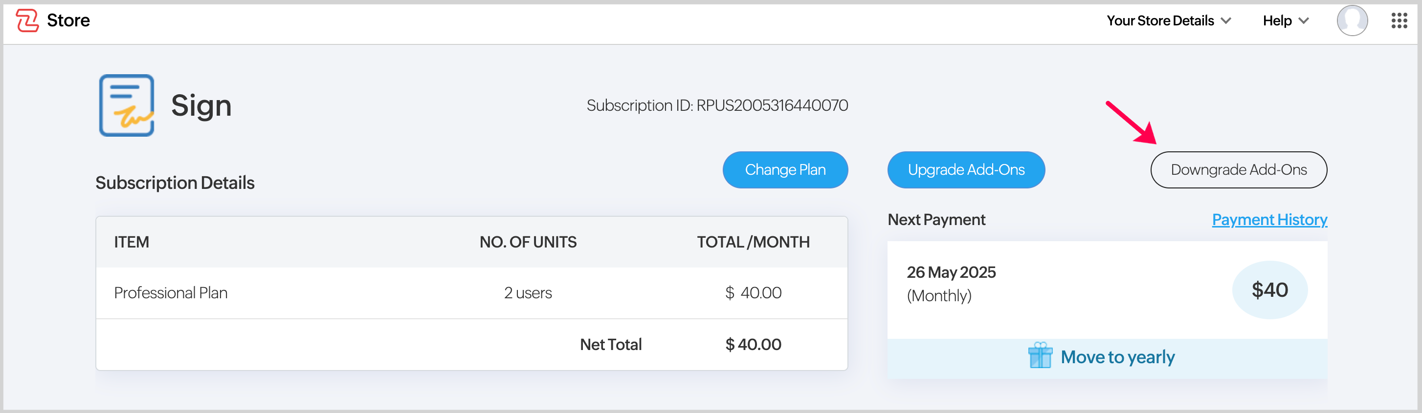 2. Reduce the number of Zoho Sign licenses in the subscription, if necessary.
