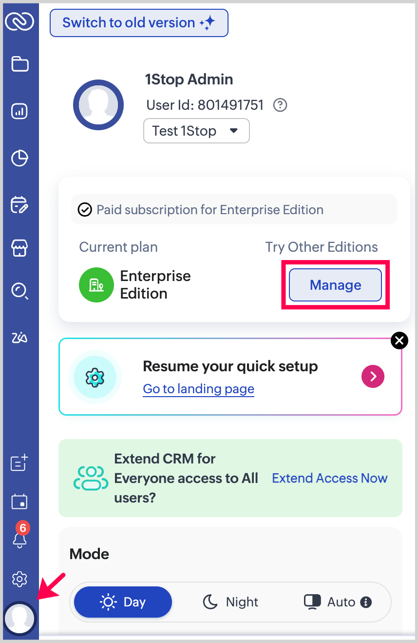 1. Click the profile icon in the bottom-left corner, and then click the Manage button.