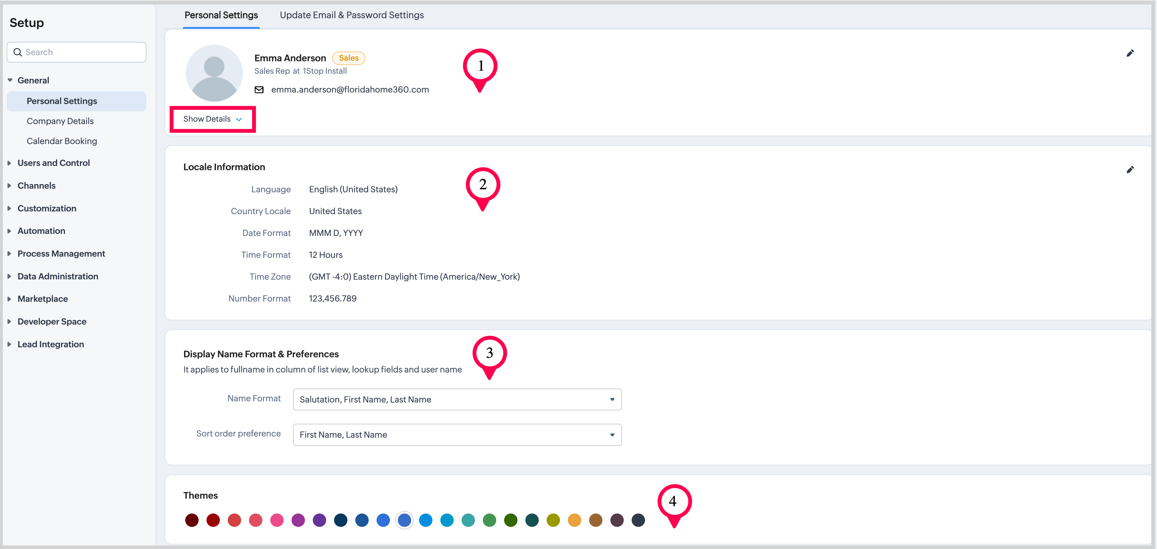2. Locale Information - Ensure the accuracy of your Time Zone setting, as it directly impacts calendar scheduling for meetings. Generally, the default settings are suitable unless you have specific preferences.