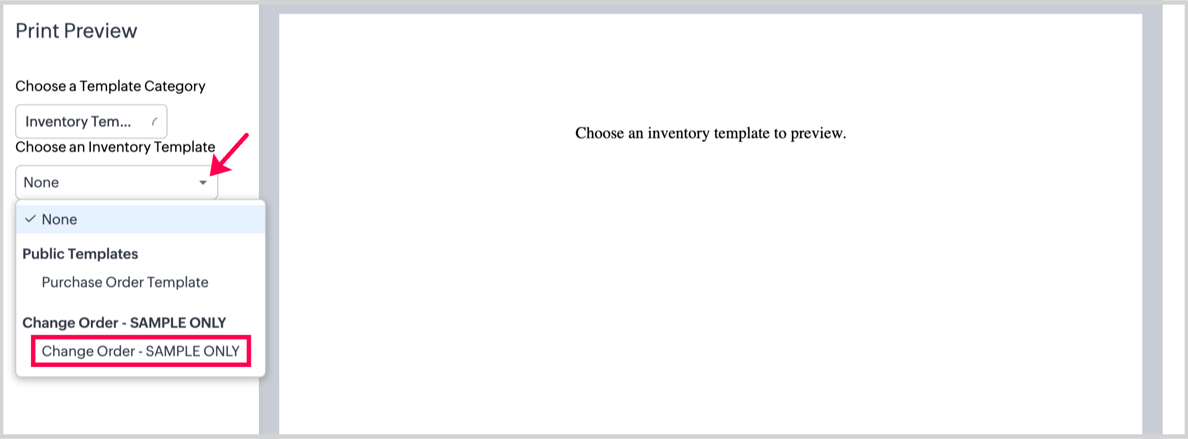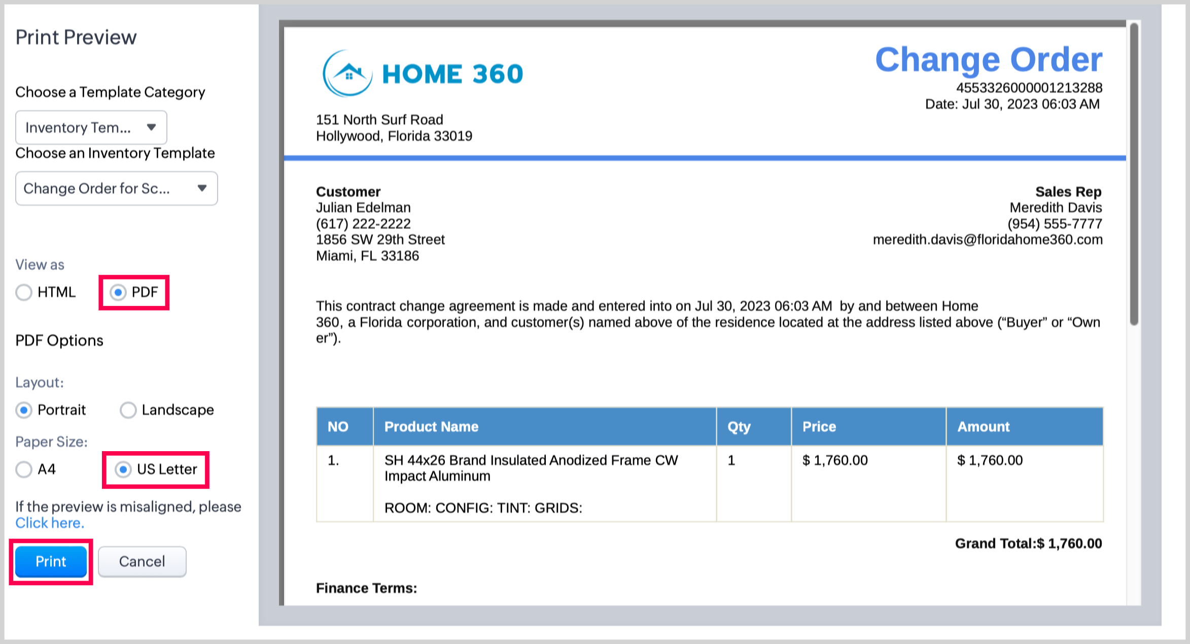 From the Preview, you can also print a hardcopy of the Change Order. After making the selections below, click Print and follow the prompts.