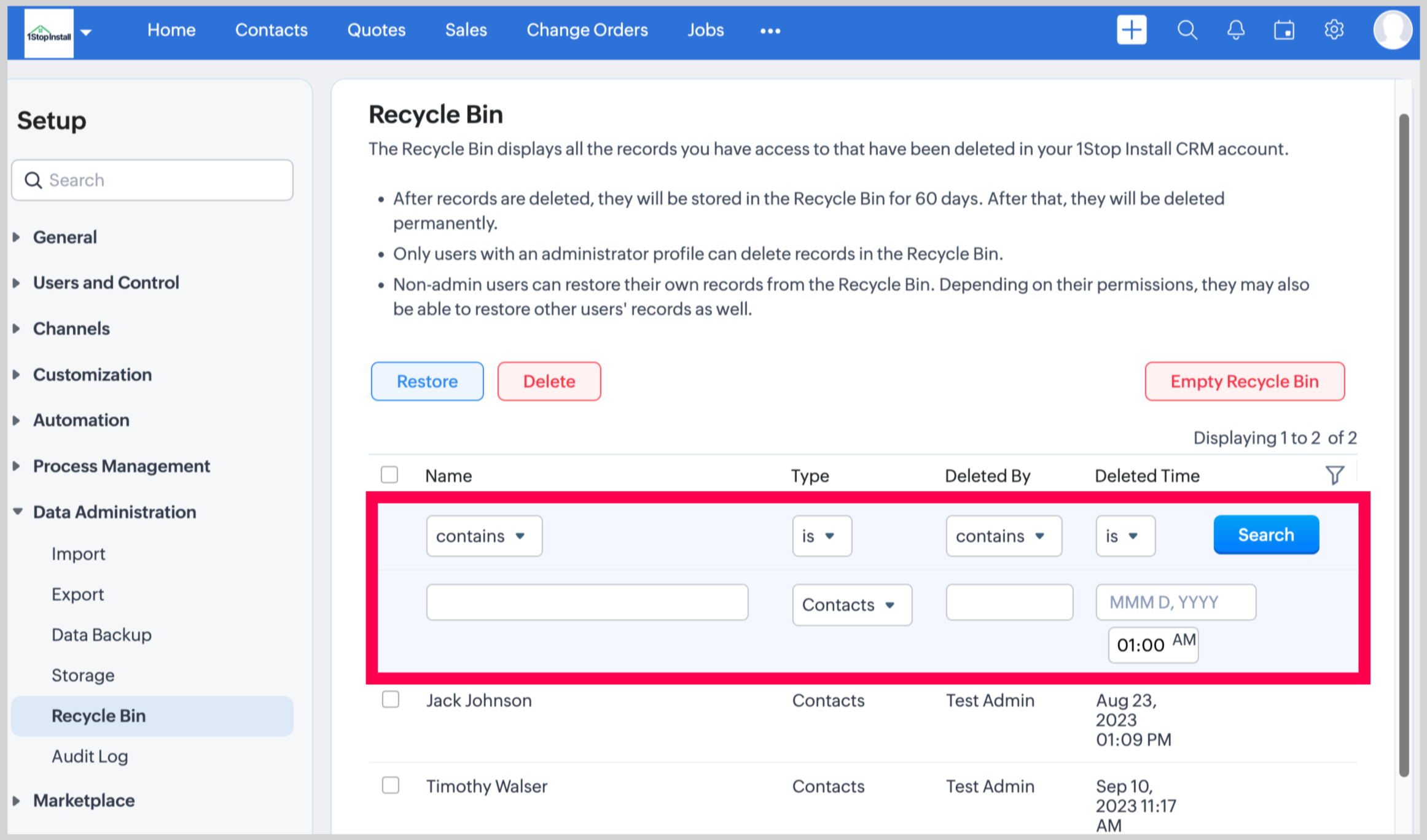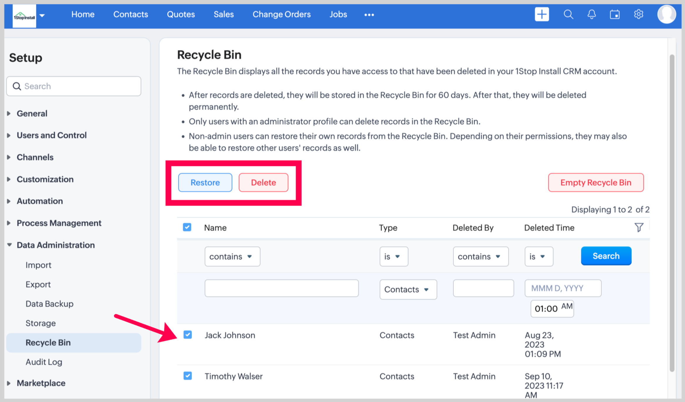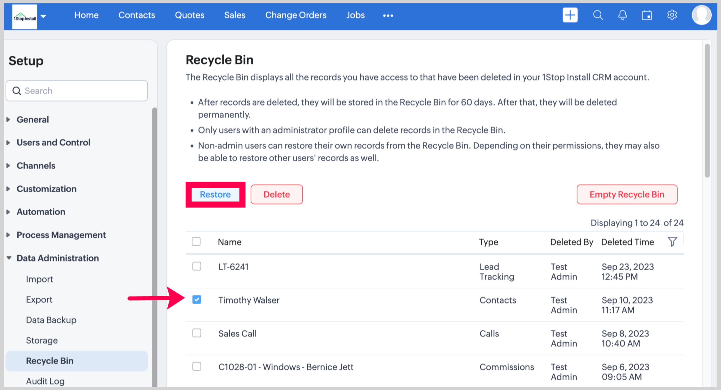 All records in the recycle bin will be auto-deleted after 60 days. Follow the instructions below to restore records before that time.