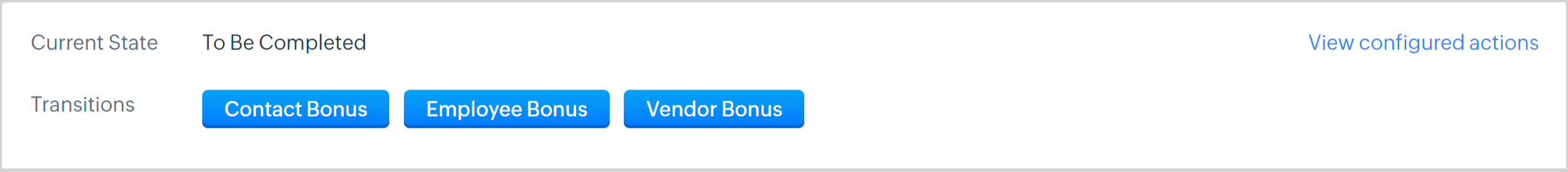 - Vendor Bonus: When the referral bonus is intended for a specific Vendor, select the "Vendor Bonus" Transition. If Bonus Type field is Referral-Vendor, this will be the only Transition available.