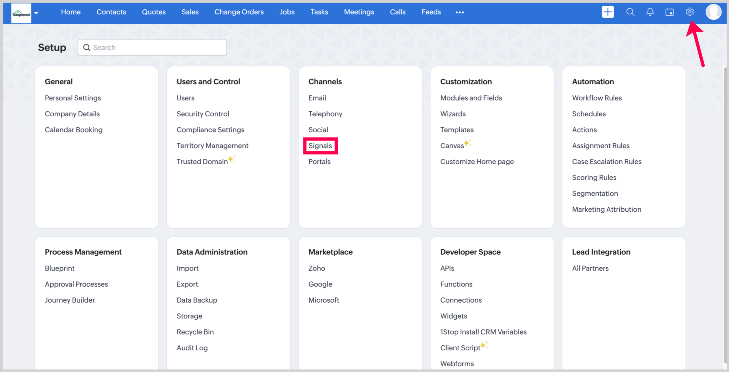 In 1Stop Install CRM, Signals are real-time alerts that inform you about interactions with your leads, contacts, or potential customers. They help you monitor customer engagement across communication channels and take immediate action in your CRM.