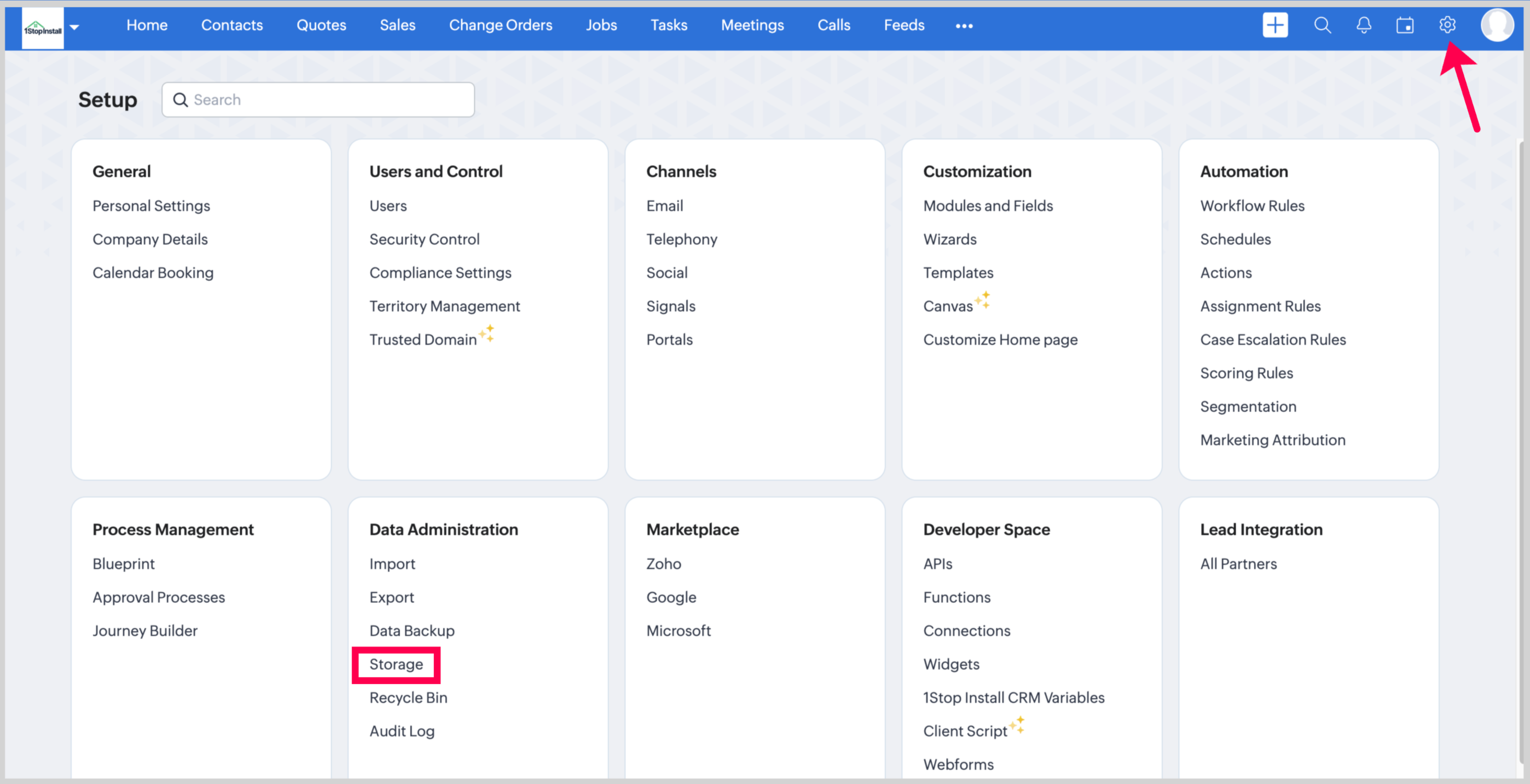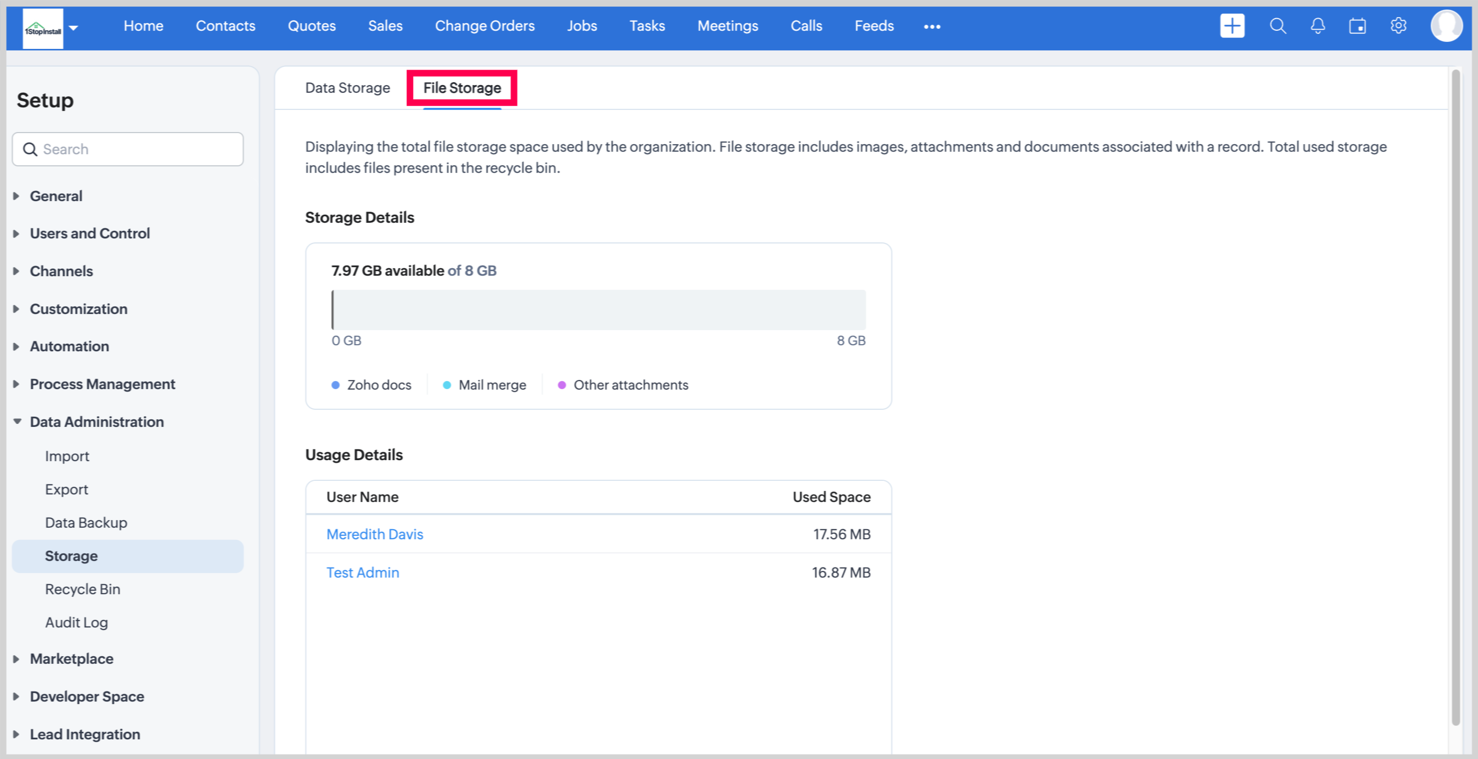1. Go to Setup > Data Administration > Storage.
