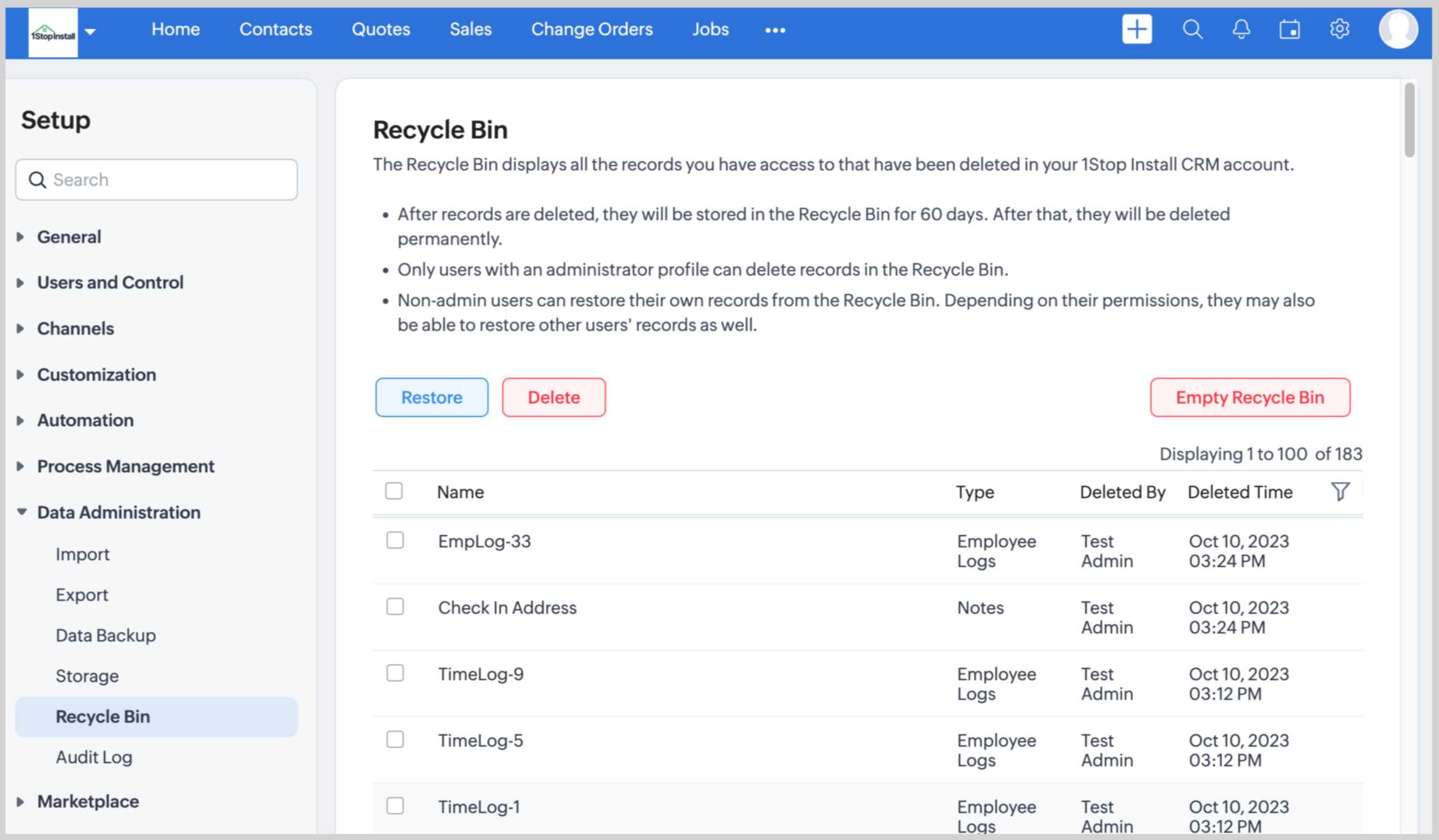 - All records in the Recycle Bin will be auto-deleted after 60 days.
