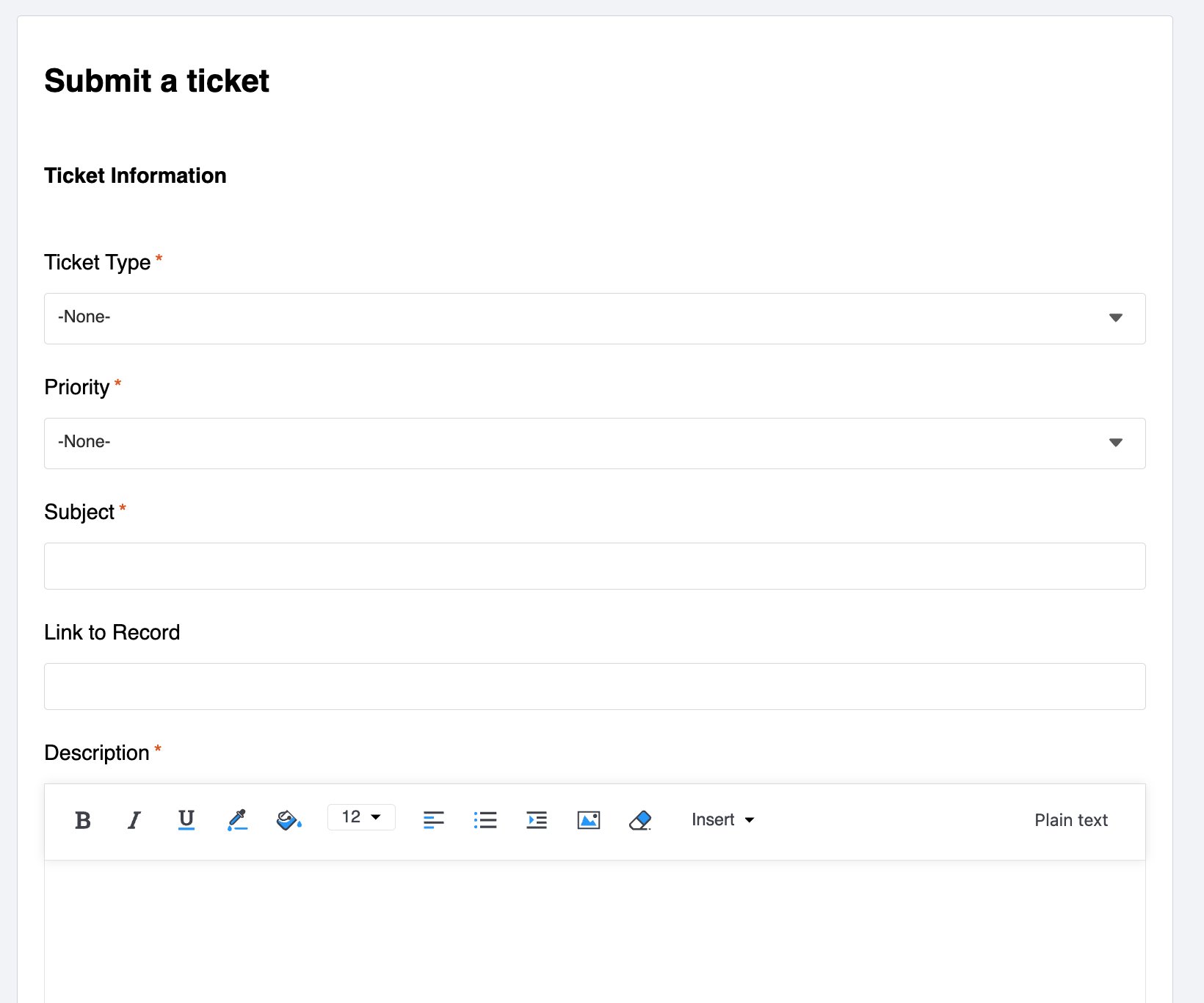 - Subject: Ticket title. Please write a descriptive title to help us understand your issue.