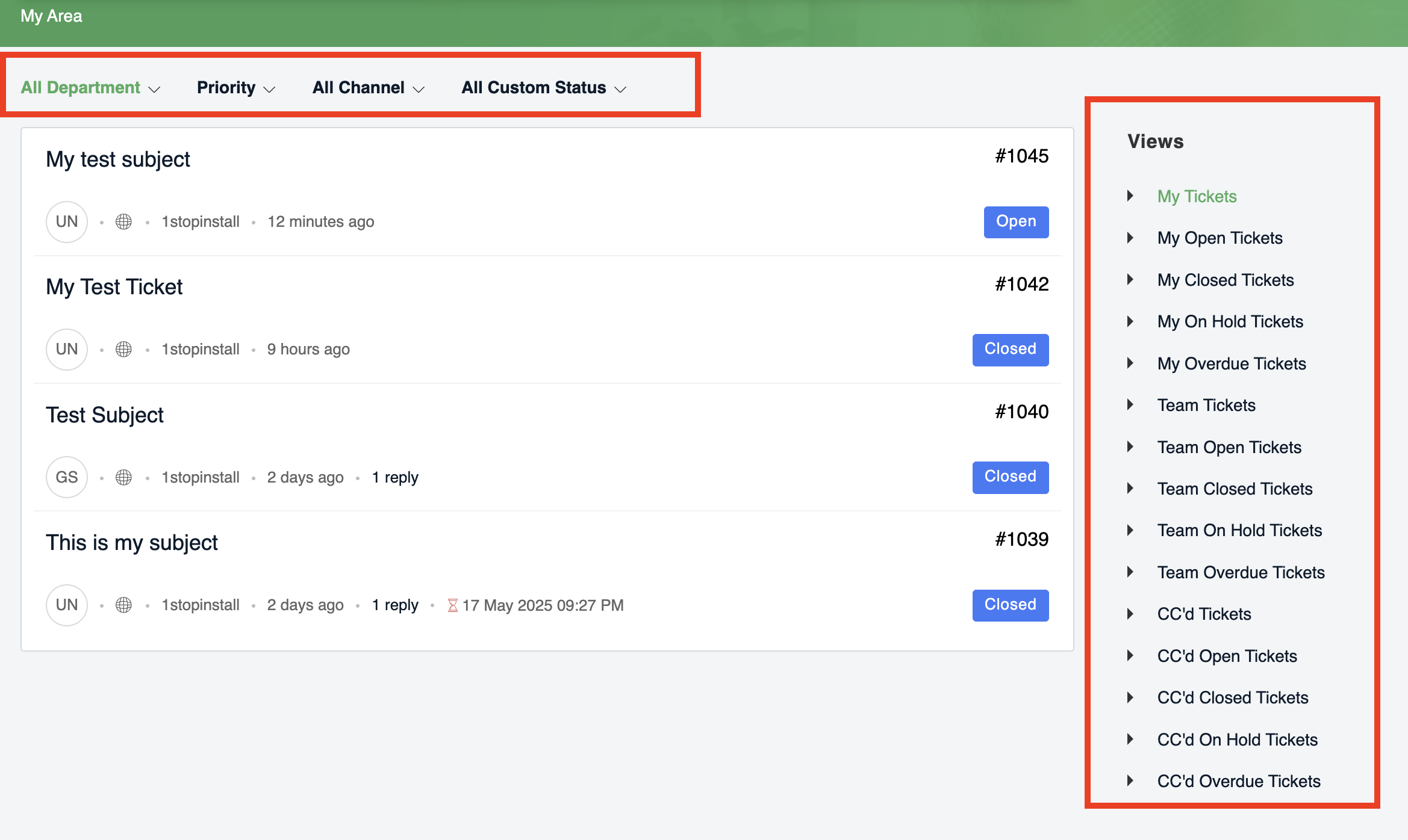 - You may also see tickets submitted by your teammates (if enabled).
