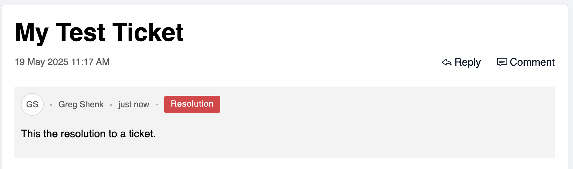 When a Ticket is resolved, it will be flagged with a red "Resolution" tag and provide an explanation regarding the issue.