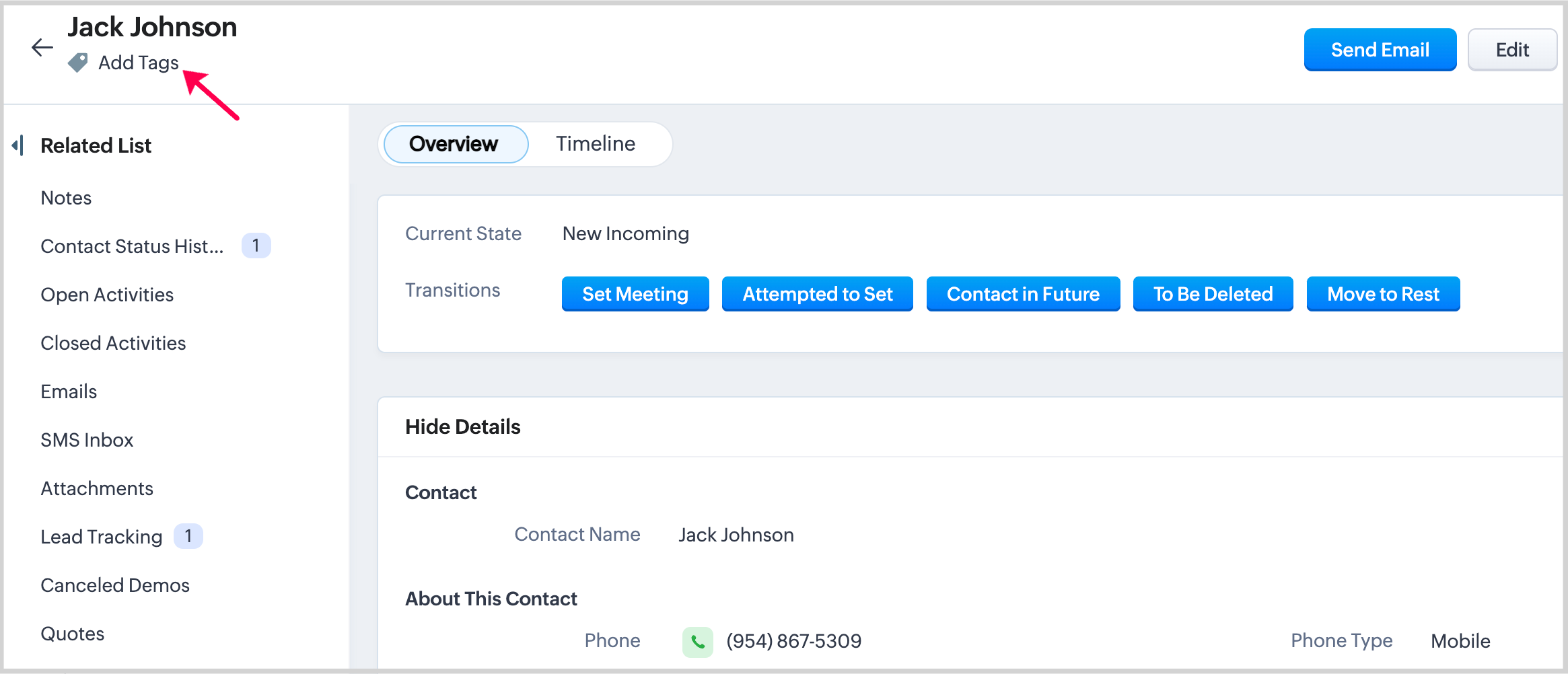 The primary purpose of using tags in 1Stop is to help you categorize and prioritize records so that you can fetch them easily. You can add tags to individual records, or add them to a group of records at one time.