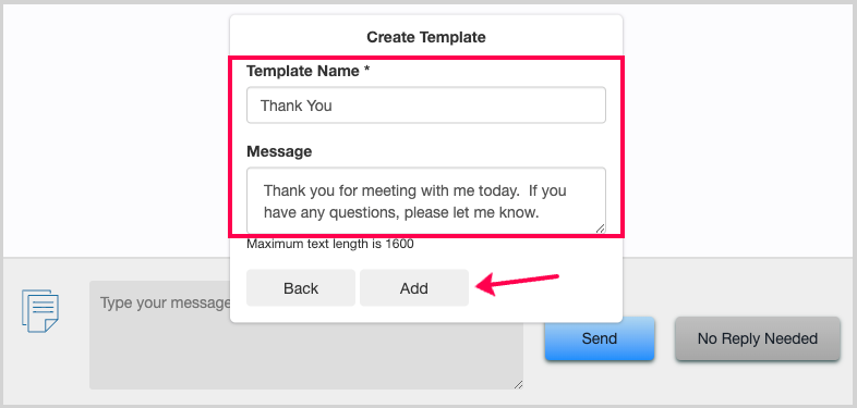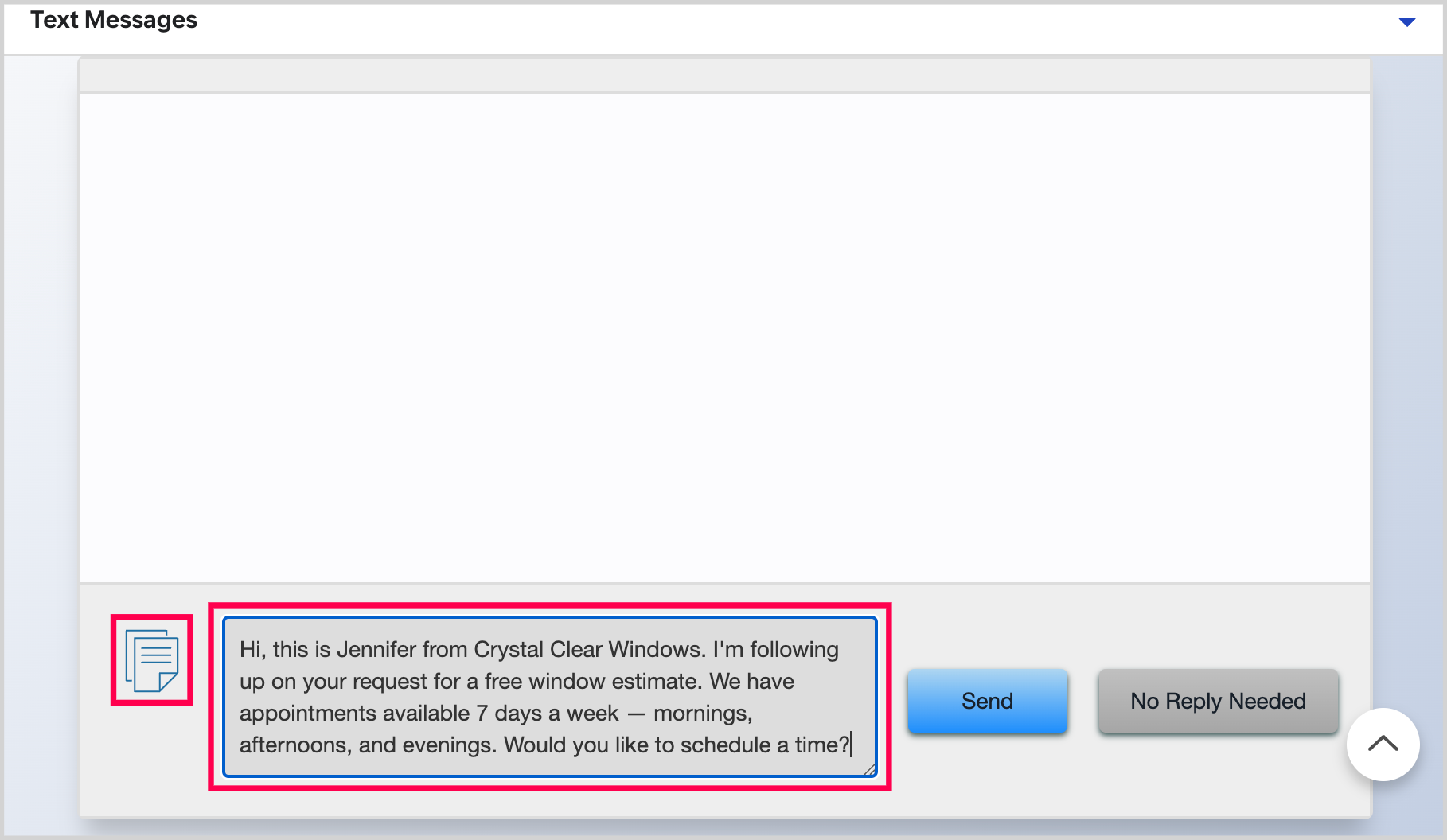 2. You can either type your message in the gray box or click the document icon to choose a template. Once your message is ready, click Send.