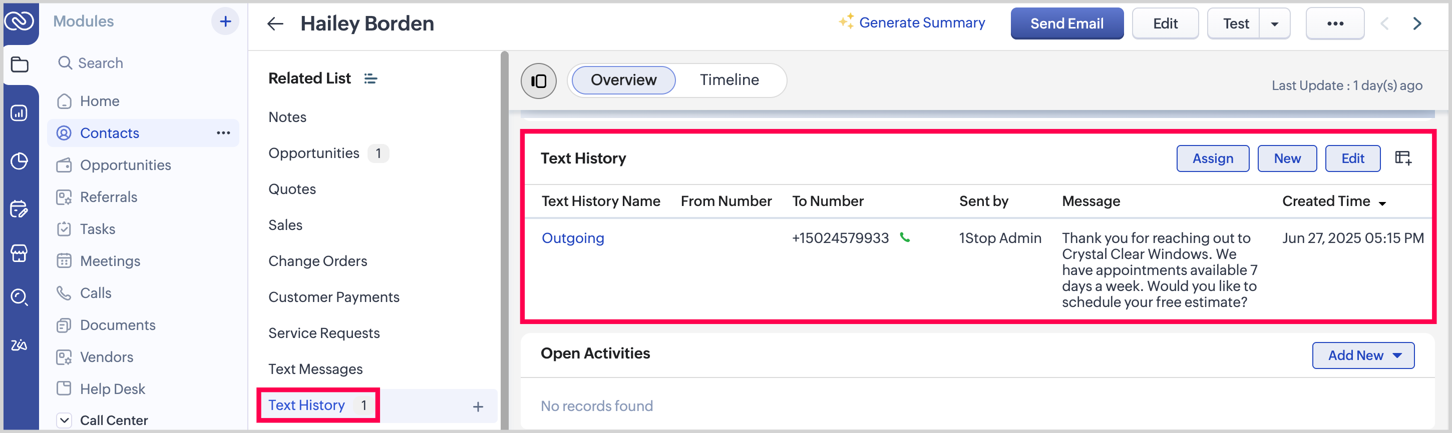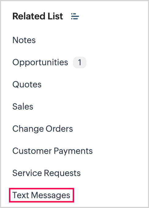 1. From the Contact record, go to the Text Messages section using the Related List.