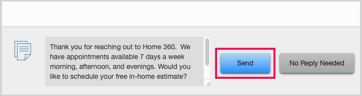 2. Confirm that the Template Message is the one you want to use, then click send.