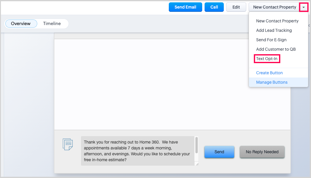 1. To opt-in a Contact, click the action button in the top right, then select Text Opt-In.