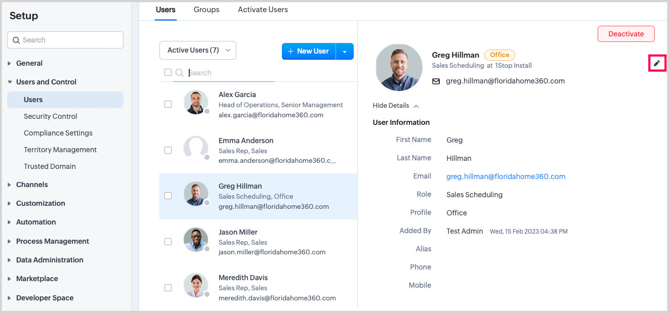 2. Choose the User you would like to add to a group, and click the pencil icon in the upper right corner.
