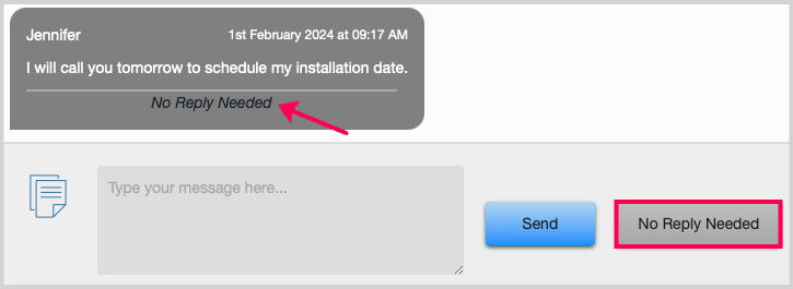 A text message will stay in your Group Inbox until you either respond to the text or you click the "No Reply Needed' button.