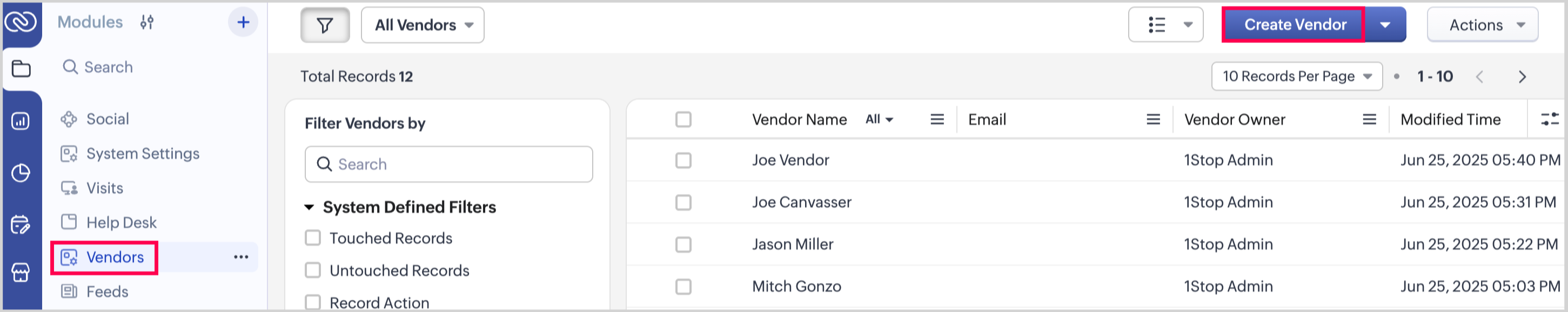 This article walks you through how to manage vendor records in 1Stop.